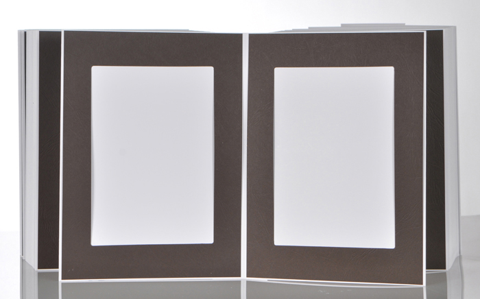 Die Passepartouts sind auf dem Trägerkarton geklebt und Sie können die Bilder von der langen Seite unter das Passepartout schieben. Das Leporello ist zusammenhängend und kann von Ihnen nach jedem Passepartout geteilt werden. Insgesamt können Sie 50 Bilder unterbringen.