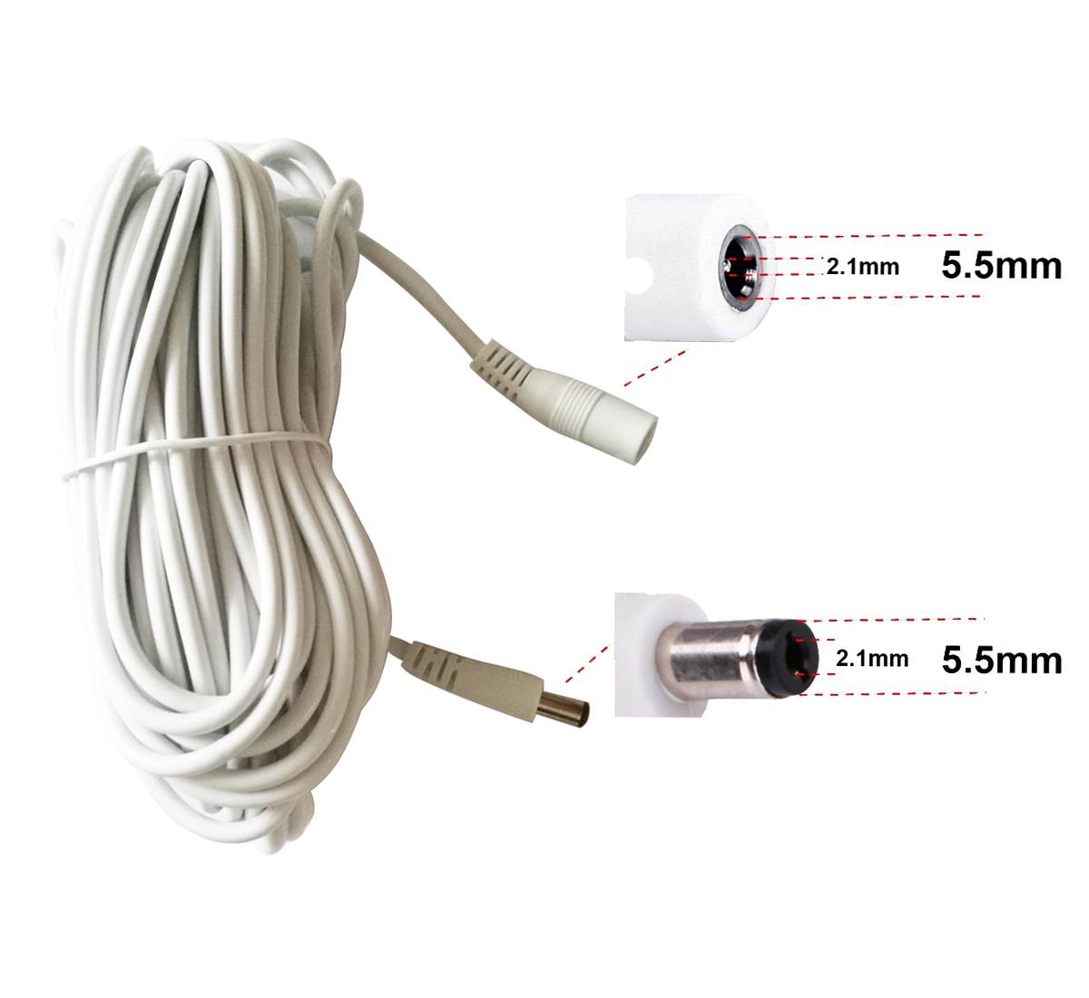 DC 12-Volt, DC size 5.5mm(outer dia.)*2.1mm (inner dia.) PVC Outer Jack, 10m (33Feet) long, White Color