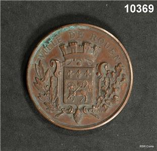 SOCIETY FOR THE PROTECTION OF ANIMALS 42MM 35G COPPER OBVERSE: ARMS OF THE CITY OF ROUEN REVERSE:1885 MR JEAN PIERRE CORRODED #10369