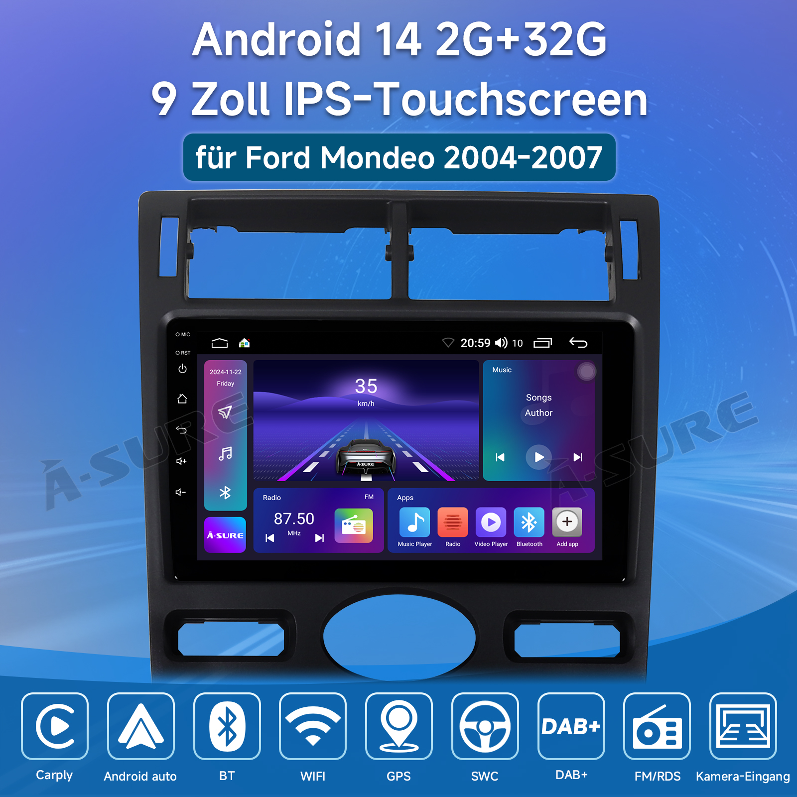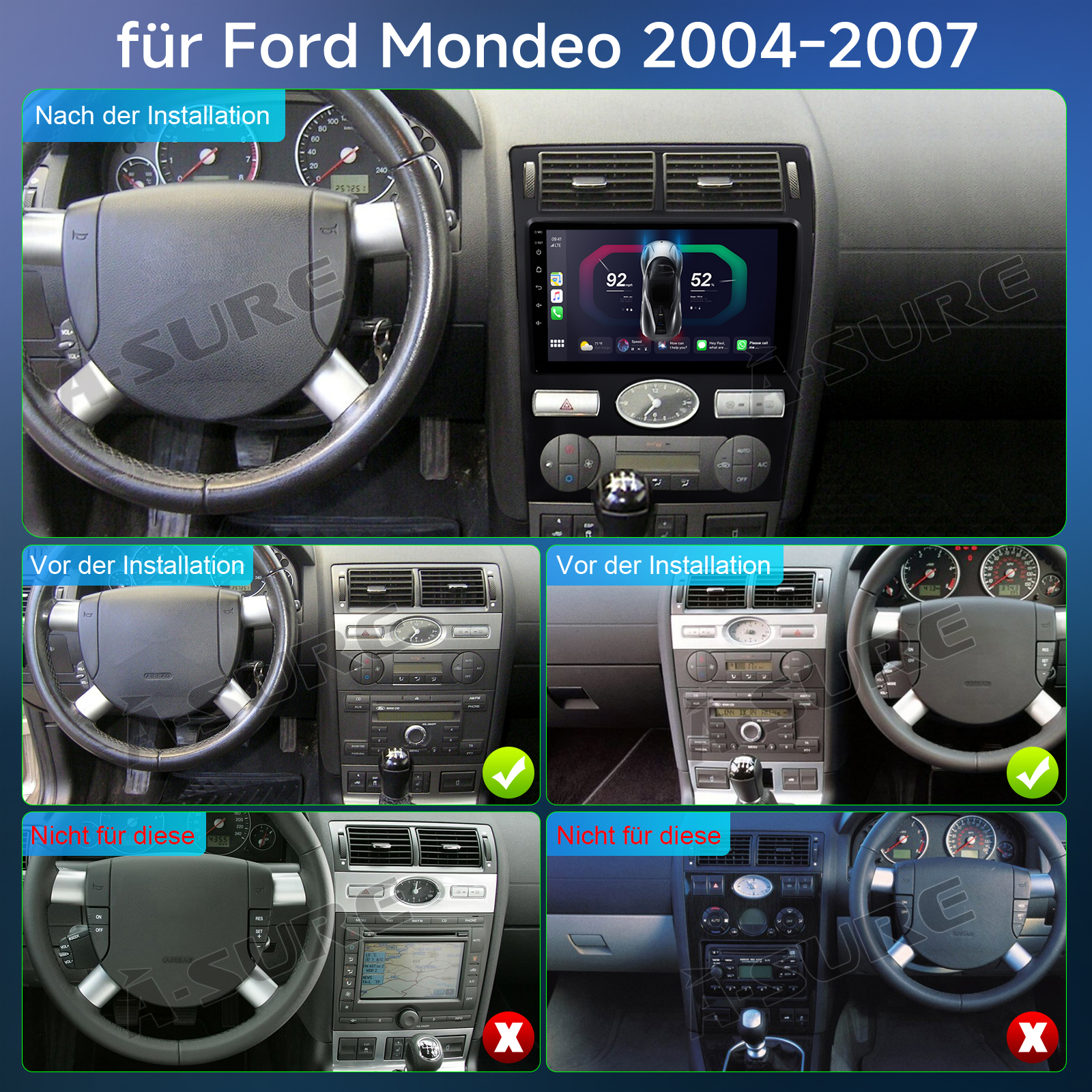 Android Auto & Wireless Carplay:CarPlay ist Apples sprachaktiviertes System für Autos, das darauf abzielt, über Siri und Ihr iPhone eine vereinfachte Startseite auf dem Touchscreen des Autos anzuzeigen, ohne dass Sie ständig auf den Bildschirm starren oder Tasten bedienen müssen. Sie können auch mit CarPlay interagieren, indem Sie die Sprachtaste am Lenkrad drücken. Android Auto verbindet Ihr Android-Handy mit unserem Radio und zeigt Ihre Android-Apps direkt auf dem Bildschirm an. Tippen Sie, um Navigationsanweisungen zu erhalten, verwenden Sie die Spracheingabe, um Textnachrichten zu senden, und tätigen Sie sogar freihändige Anrufe bei Familienmitgliedern. Android Auto ist darauf ausgelegt, Ihnen zu helfen, sich auf das Fahren zu konzentrieren und Ihre Zeit auf der Straße angenehmer zu gestalten.