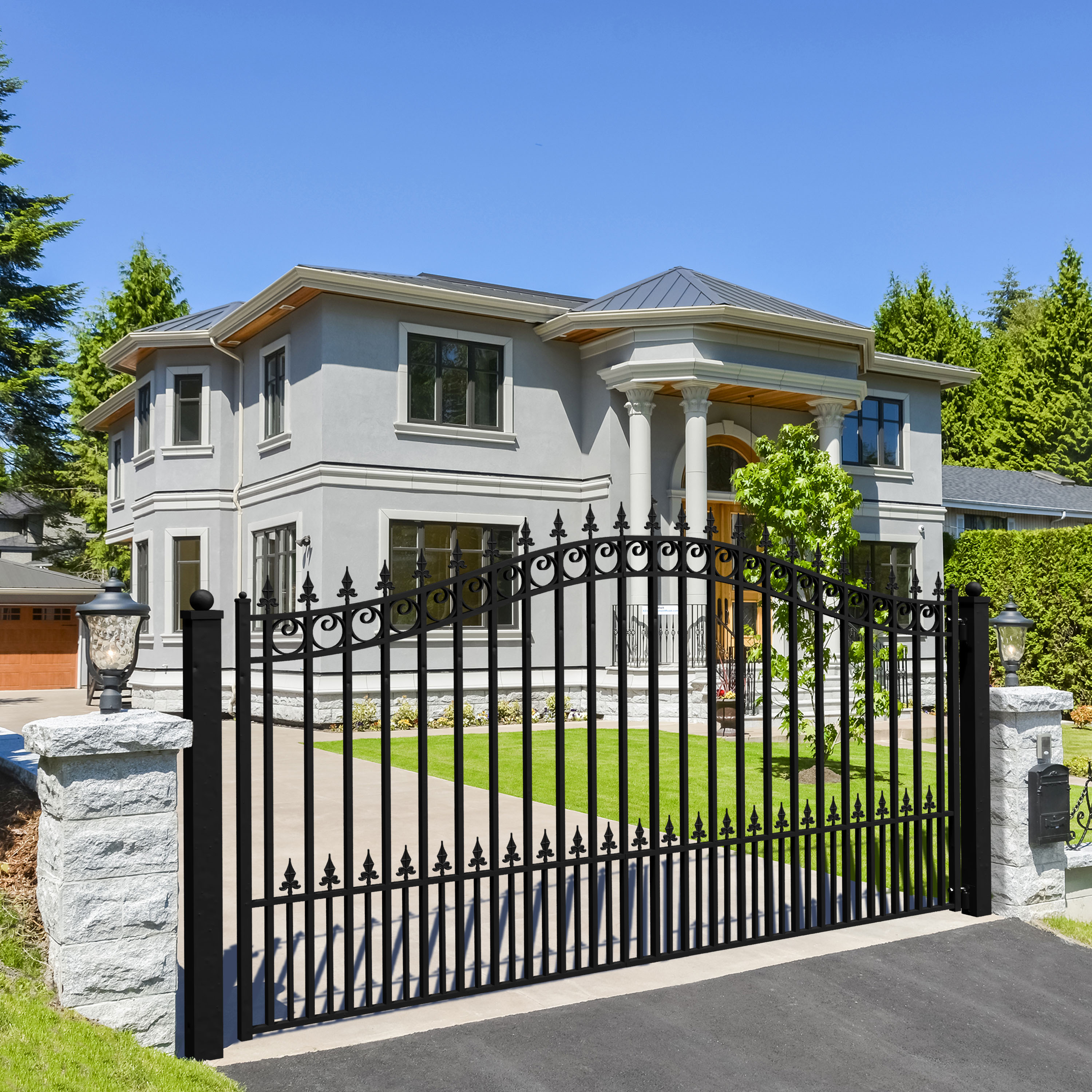 ALEKO 12' x 6' Single Driveway Gate with Pedestrian Gate. Keep children and pets at a safe distance from busy streets, while also allowing them to play and wander through your space freely. The Pedestrian Gate allows people to enter and exit your property without having to open and close the entire gate system. We use the Duplex System when to make our gate: Galvanized Steel and Powder Coated Paint. Galvanized Steel is a process that protects the steel from rust and corrosion. The powder coating actually increases the life of galvanized steel. Unlike conventional paints, powder coated paints will not peel, chip or crack. One of the most dramatic changes you can make to the exterior of your home is adding an electronic opening gate that increases home security and enhances the aesthetics of your property. Make this driveway gate into an automatic gate by installing a gate opener.