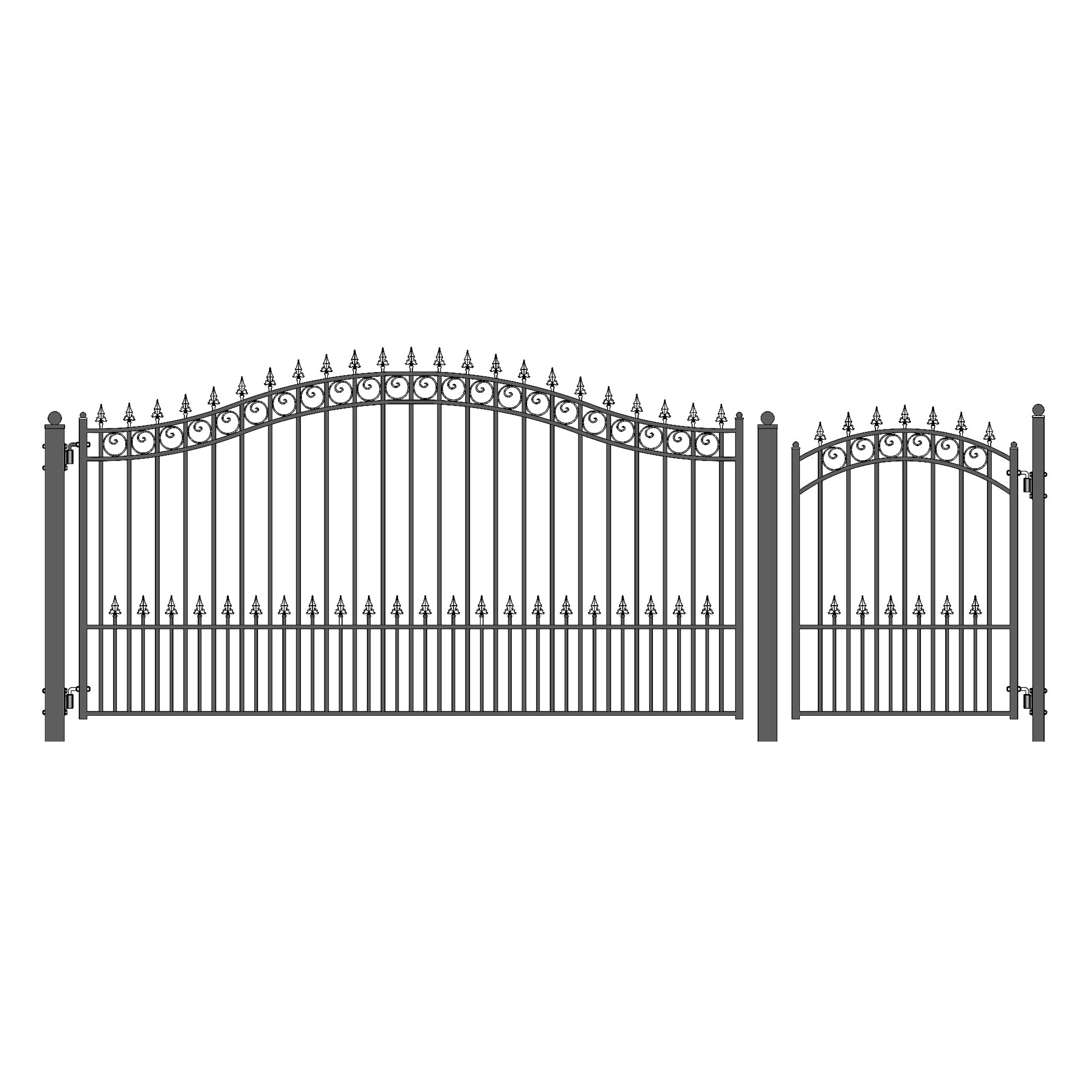 ALEKO Prague Style Steel Single Driveway Gate 12 ft and Pedestrian Gate