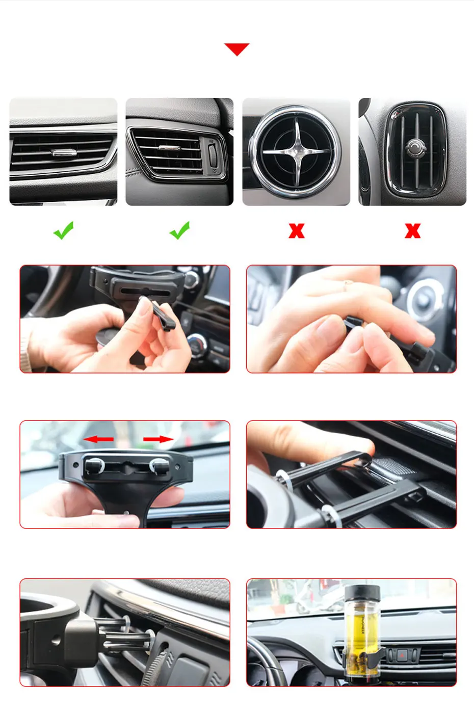 Applicable car model: for horizontal blade air outlet (not for non-standard or vertical air outlet blades.)