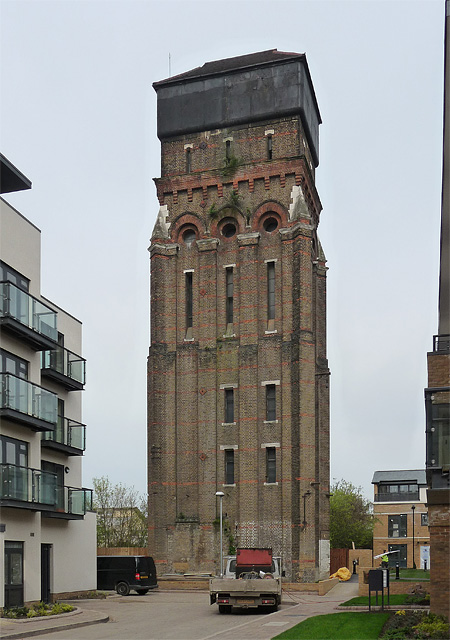 PHOTO LONDON FORMER WATER TOWER RENFREW ROAD BUILT TO SERVE LAMBETH WORKHOUSE IN 1877 BY FOWLER & HILL IN A VENETIAN GOTHIC STYLE WITH MIGHTY BUTTRESSES AND CROWNED BY A LARGE METAL TANK. THE SURROUNDING AREA WAS IN THE PROCESS OF BEING CONVERTED INTO FLATS AND IT LOOKED AS IF THE TOWER WAS AT LEAST BEING ATTENDED TO BUT IT IS CURRENTLY ON ENGLISH HERITAGE'S HERITAGE AT RISK REGISTER. A CHALLENGING BUILDING FOR WHICH TO FIND A NEW USE. GRADE II LISTED.FELLOW GEOGRAPHER TERRY ROBINSON TELLS ME THAT THE CONVERSION OF THIS TOWER INTO A NINE-STOREY PRIVATE RESIDENCE WAS RECENTLY (OCTOBER 2012) RELATED IN AN EPISODE OF CHANNEL 4'S GRAND DESIGNS. 2011 COPYRIGHT (Photograph and text in Extra Info) STEPHEN RICHARDSPHOTO PAPER THICKNESS NORMAL PHOTOGRAPH THICKNESS