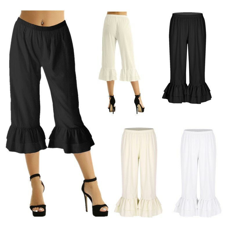 Women ladies retro vintage renaissance ruffle bloomers pants, pull on closure.