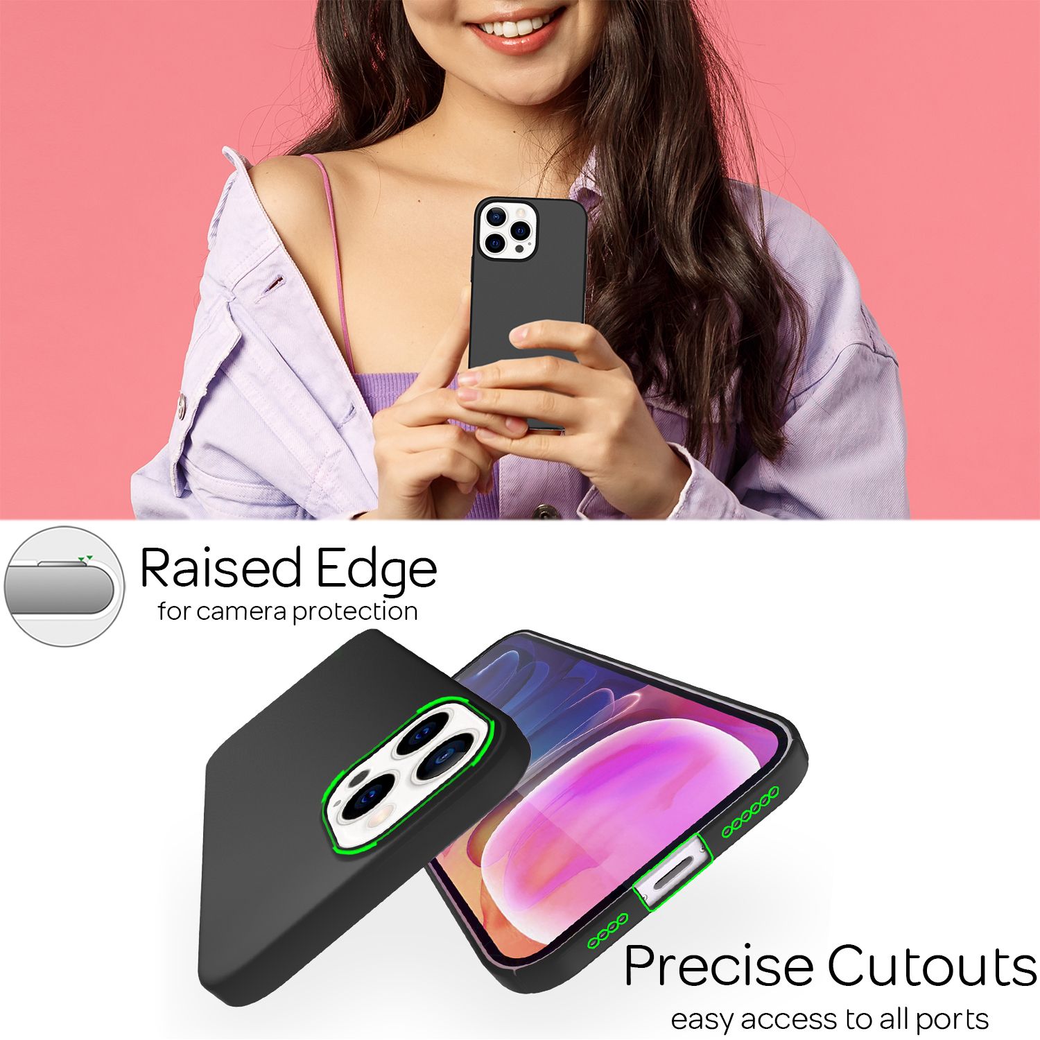 Passgenaue Aussparungen für vorhandene Anschlüsse, Tasten, Kameras & Lautsprecher sorgen für uneingeschränkte Bedienbarkeit.