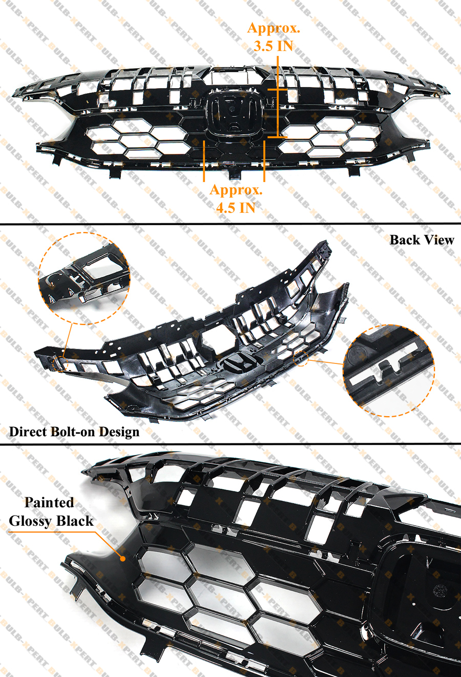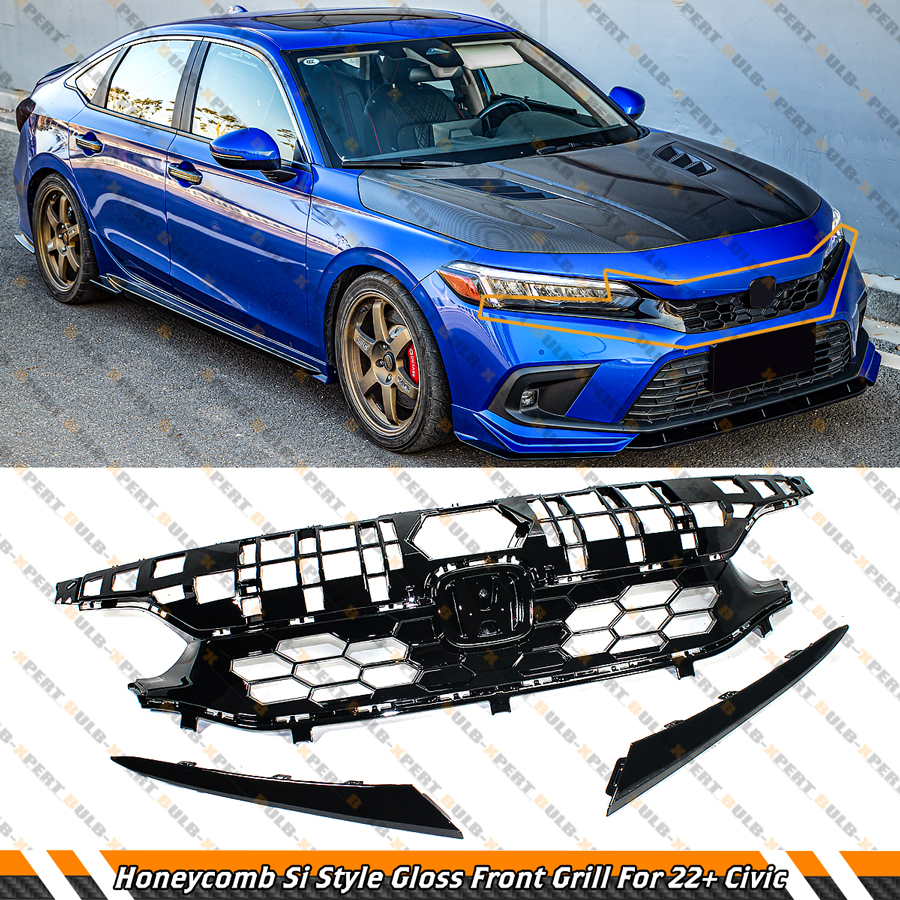 FOR 2022-2024 HONDA CIVIC 4DR SEDAN Si STYLE HONEYCOMB GLOSS BLACK FRONT GRILLE