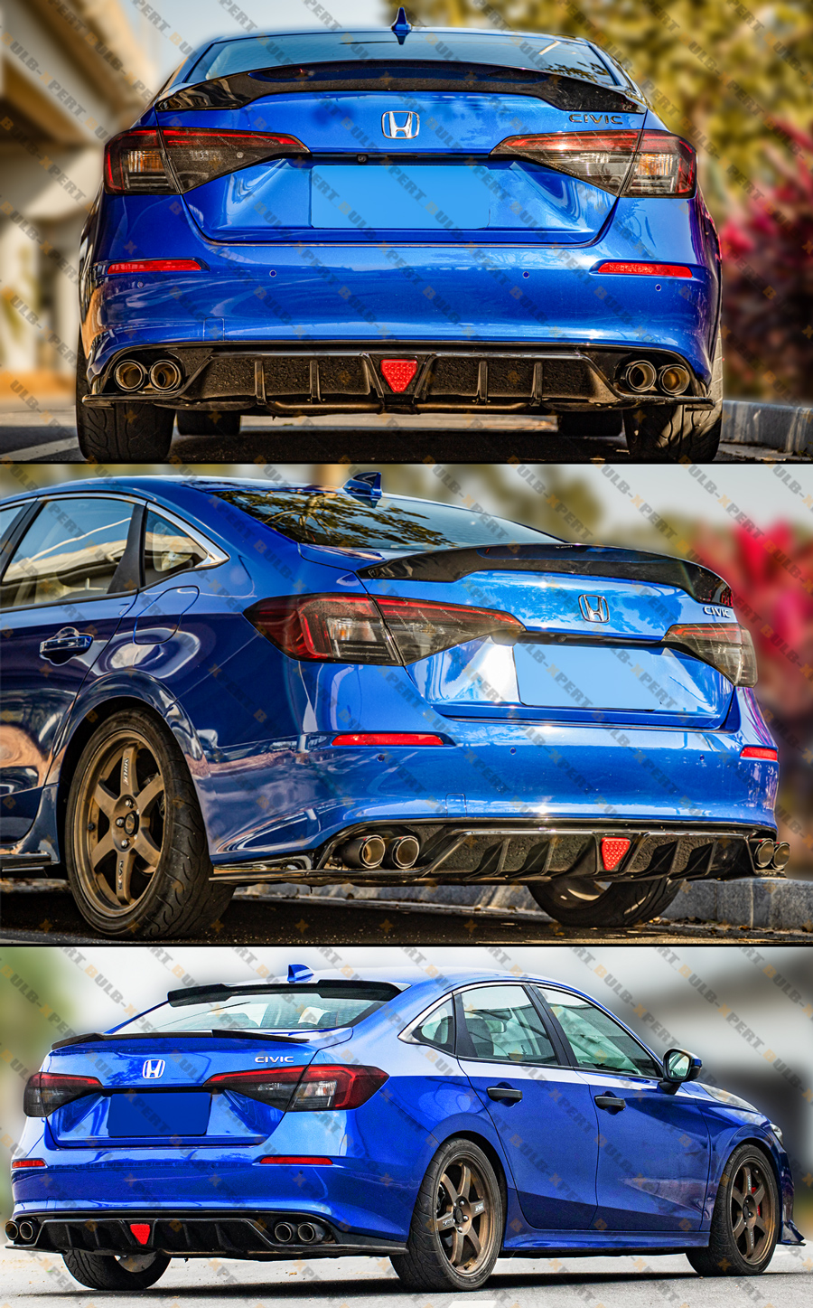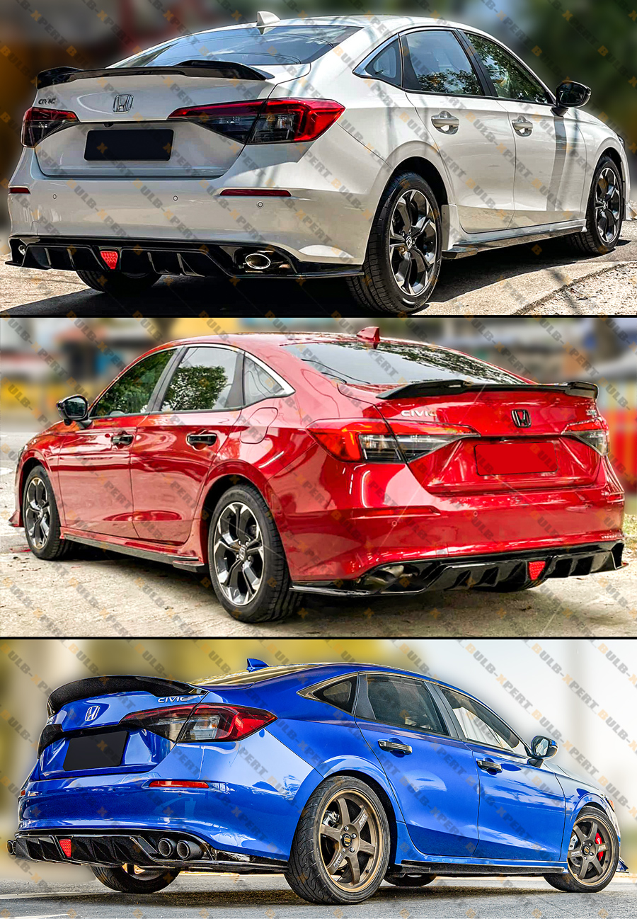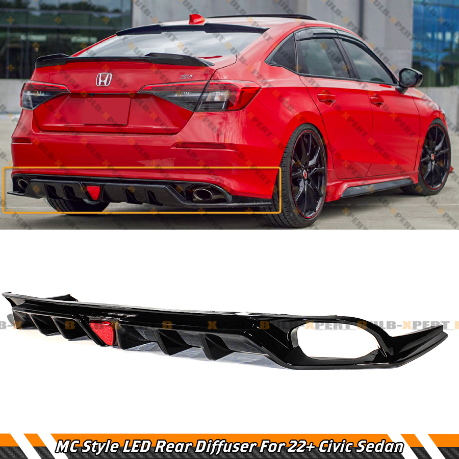 FOR 2022-2026 HONDA CIVIC MC STYLE FE180 GLOSS BLACK REAR DIFFUSER W/ LED LIGHT