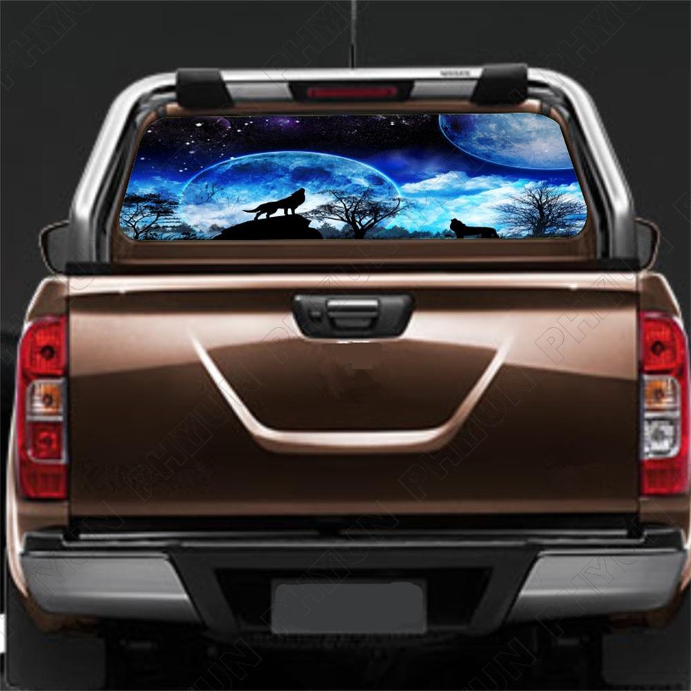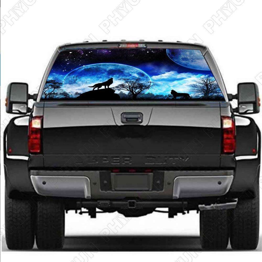 Moon Forest Wolf  Rear Window Sticker Perforated Window Graphic Sticker for SUV  Truck 147x46CM