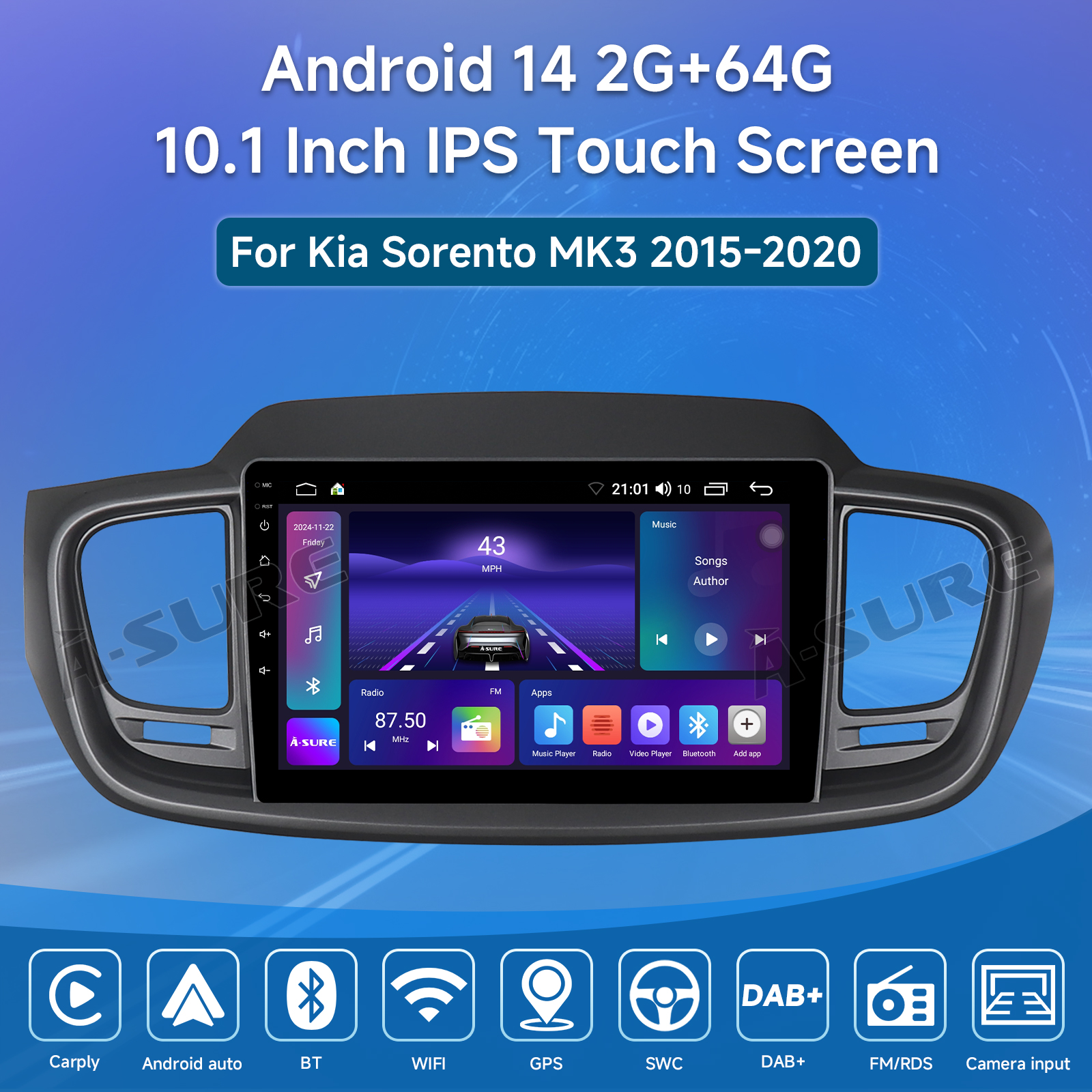 2+64GB Android Auto Car Stereo Radio GPS Navigation Head Unit Touch Screen For Kia Sorento 2015-2020