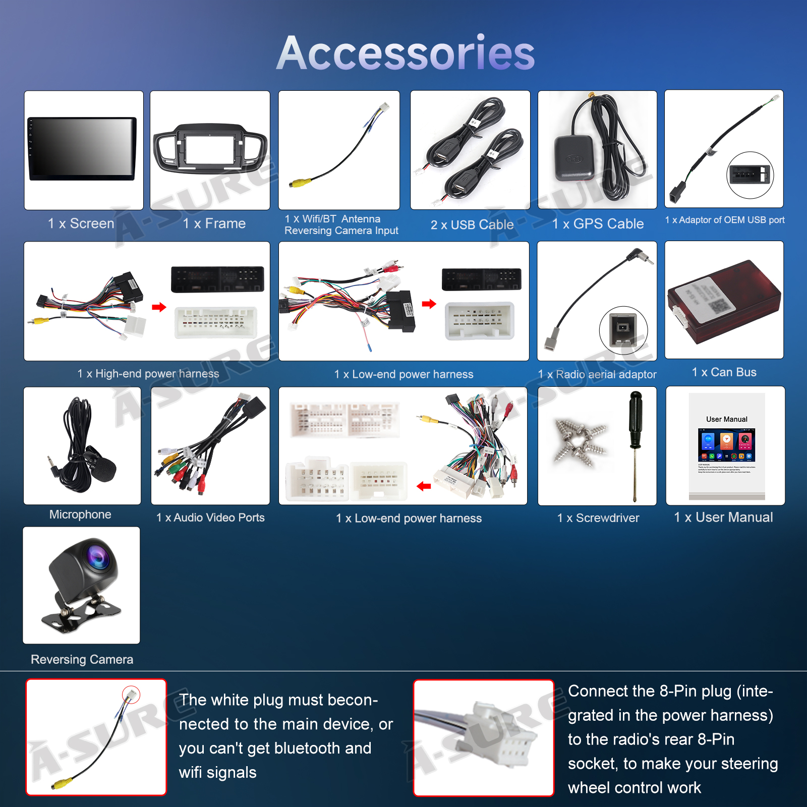 - Android Auto: Wired or wireless Android auto in-vehicle system can closely integrate the user's Android device and Android experience with the dashboard system. Users who use wireless Android auto can connect to the car system via Bluetooth to realize voice-controlled navigation, make calls, send and receive messages, and listen to music. It is only available for Android phone(Android phones need to download android auto APP)