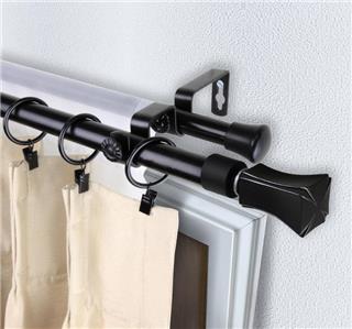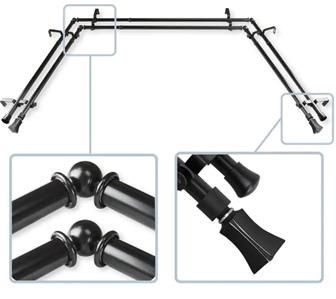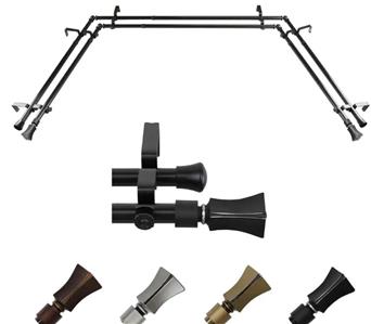 New 13/16" Dia Adjustable 20"-36", 38"-72" Bay Window Double Curtain Rod with Ariana Finials in Black.