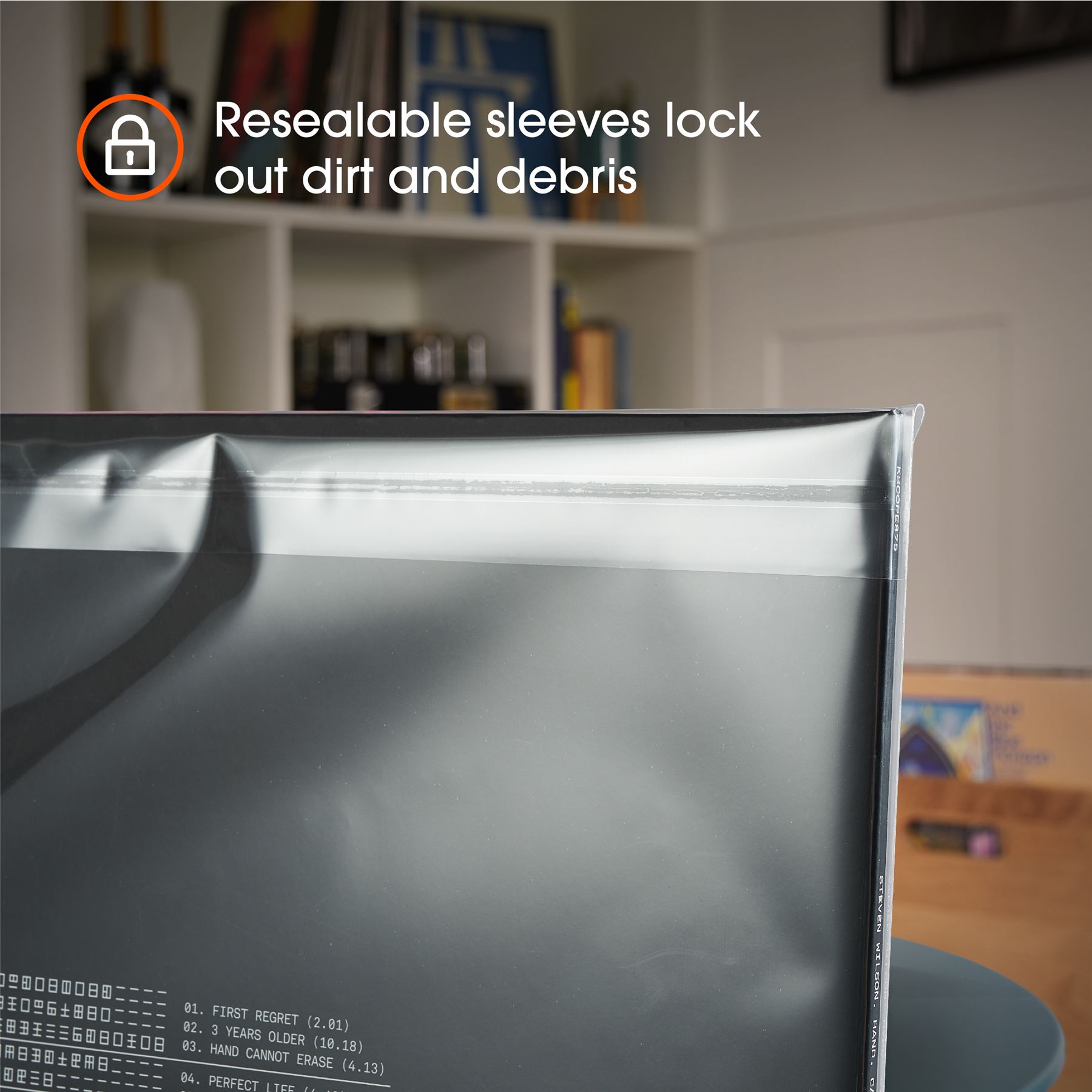 Resealable – There is a seal strip on the body of the bag which completely seals your record, protecting it from dust, debris and scratches. Whilst these sleeves are perfect for collectors, the adhesive stays sticky so the record can be opened and played as normal.
