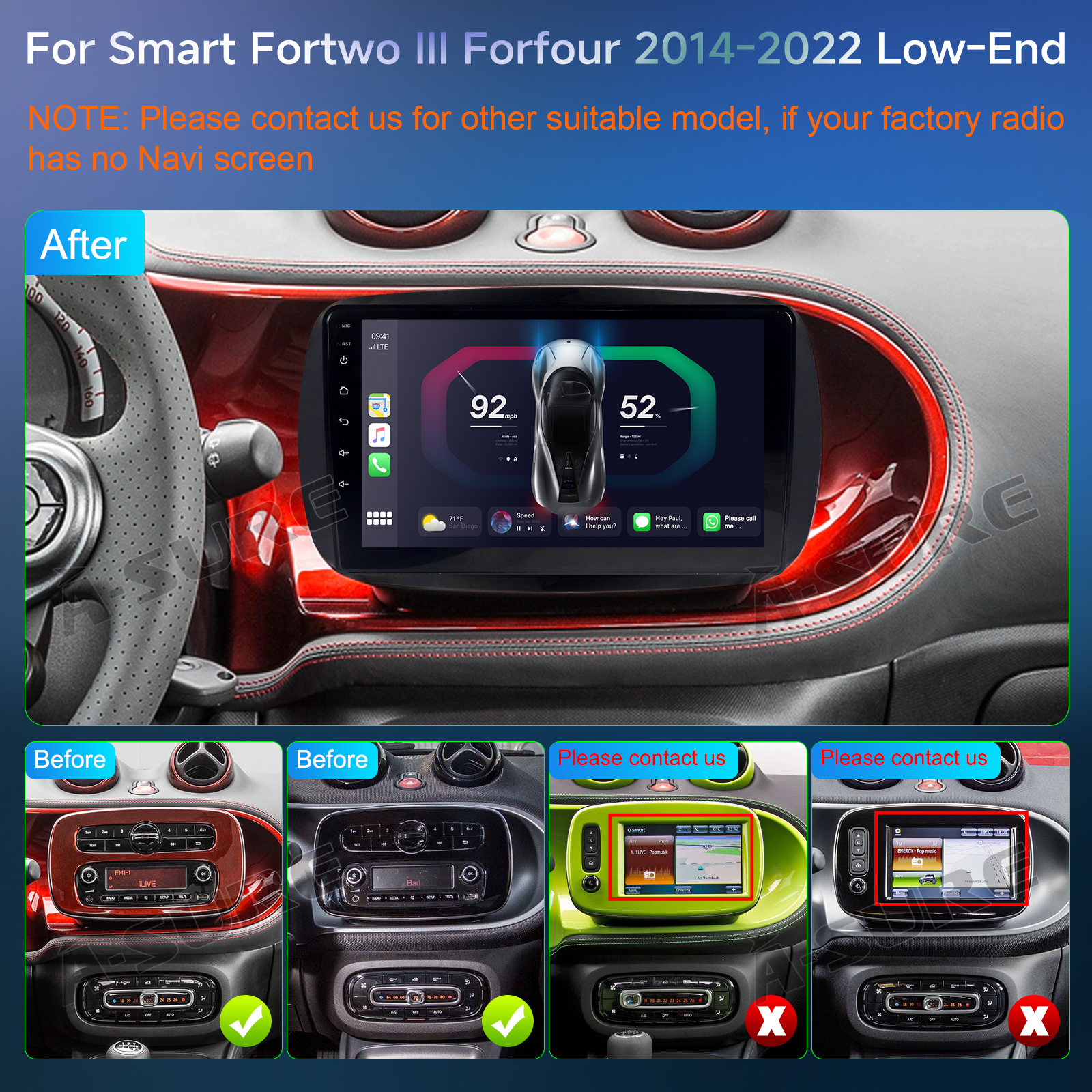 2. Android Auto: wired or wireless Android auto in-vehicle system can closely integrate the user's Android device and Android experience with the dashboard system. Users who use wireless Android auto can connect to the car system via Bluetooth to realize voice-controlled navigation, make calls, send and receive messages, and listen to music. It is only available for Android phone(Android phones need to download android auto APP)