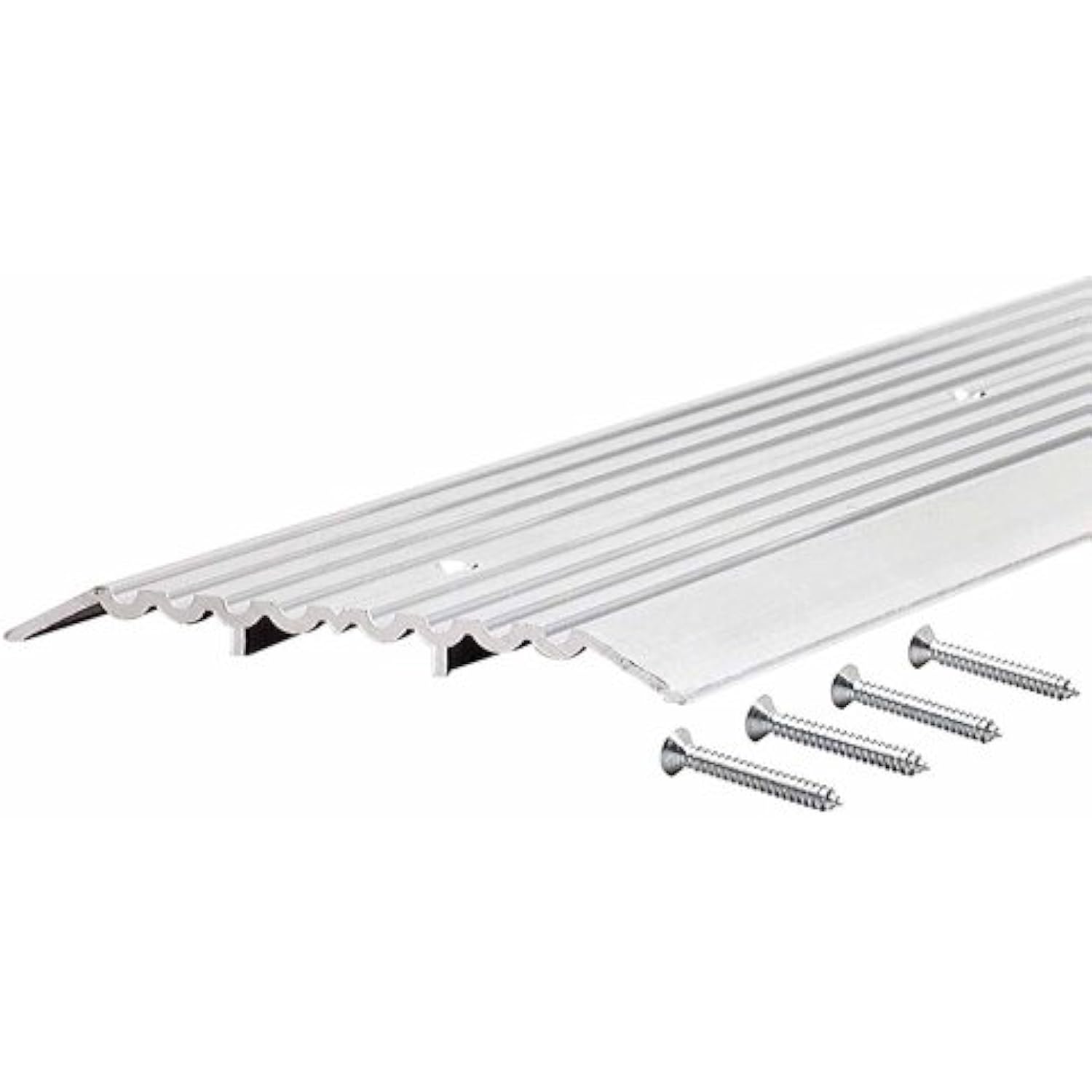 Product Description M-D saddle threshold, heavy duty, fluted, 6 in width, 36 in length, 1/2 in height, aluminum, for commercial applications. Heavy duty aluminum assures years of protection from the elements. Installing a threshold will help to seal out drafts from the bottom of your door. Helps make your home more comfortable and saves energy. From the Manufacturer Heavy duty aluminum assures years of protection from the elements. Installing a threshold will help to seal out drafts from the bottom of your door. Helps make your home more comfortable and saves energy.