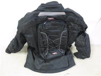 Vega Technical Gear's Black Pack Jacket is one of the most feature packed. This jacket comes with an quilted full-sleeve insulated zip in/out liner, a waterproof full-sleeve inner-liner that will keep you dry and can be worn as a separate jacket. The detachable backpack has interior organization pockets and an elastic stretch helmet pouch. You can also put a beverage bladder inside the backpack, or between the shell, where the bladder can hook to the loop at the back of the jacket. The Pack Jacket is made from 100 percent Dura-Guard heavy duty 600D polyester fabric and has shoulder, elbow and back CE certified armor for maximum durability and comfort. The 3M Scotchlite retro-reflective patches and piping on the front and rear are great for being visible at night. With the large panels in the front, back and sleeve that zip open to expose wide mesh vents you will stay cool on even the hottest days with the nice cross ventilation. This jacket is fully adjustable with the webbing belt at the waist, zipper and gusset at the hip, hook/loop sleeve cinches, cuffs and neck roll. The Pack Jacket is also very comfortable with the padded neck roll and fleece-lined hand warmer hip pockets. The front and rear pockets have storm flaps and the large rear pouch pocket can hold your liner. The Pack Jacket is available in two colors Black and Hi-Visibility Yellow and eight sizes X-Small - XXXX-Large. All Vega Technical Gear is backed by 1 year manufacturer defect warranty. The warranty excludes wear and tear, any end-user modification, improper use or abuse, and/or crash damage.