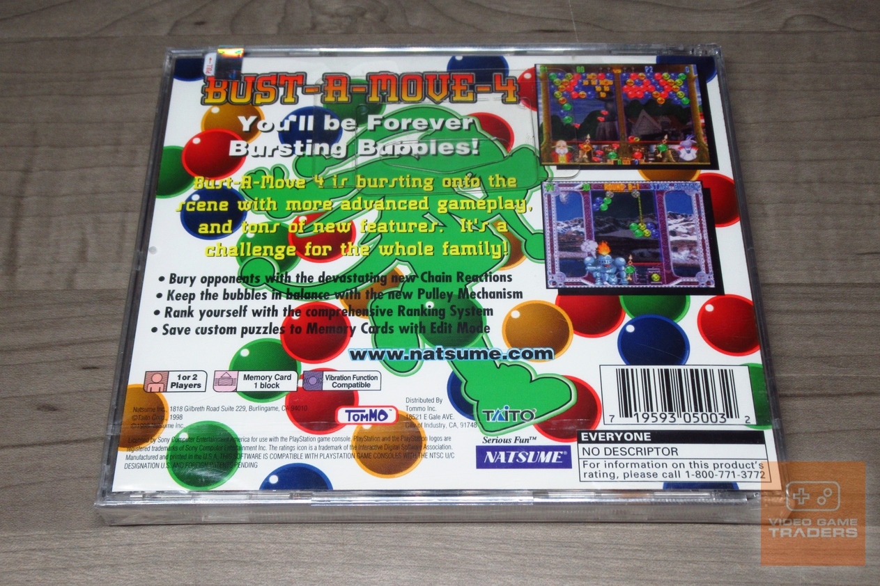 For sale is a rare & iconic Bust-A-Move 4 game for the PlayStation 1 released back in 1998. An absolute must own for any serious game collector.