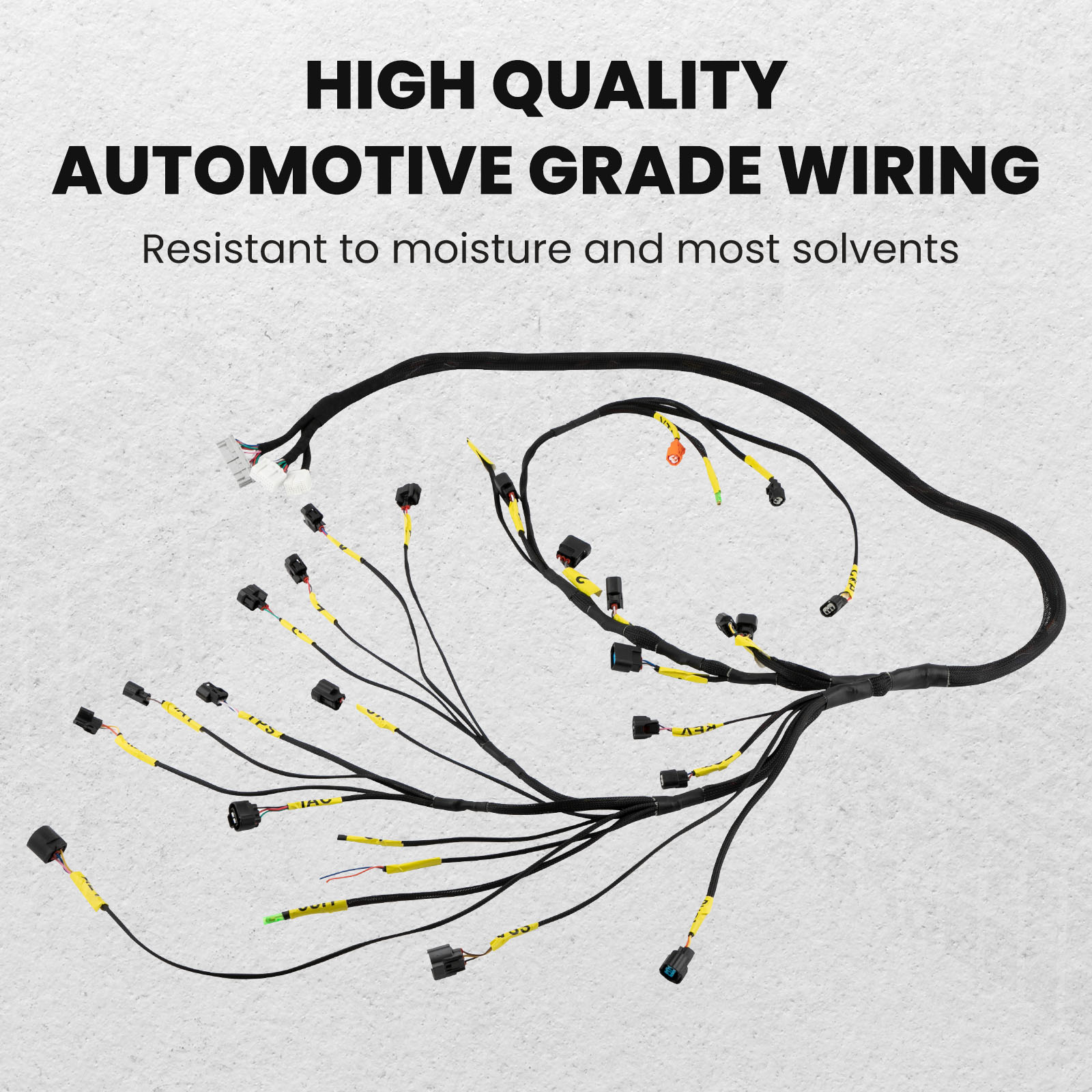 2. Military grade heat shrink loom is used to cover entire harness--resistant to gas and diesel