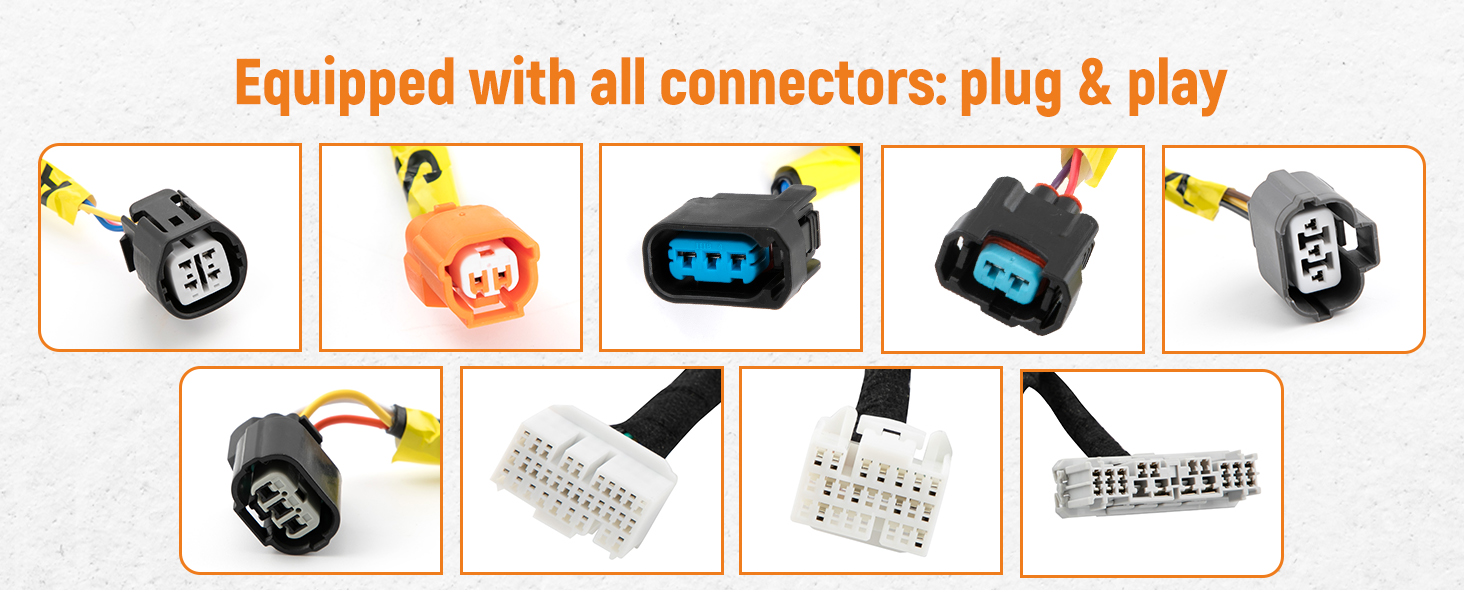 3. It comes with Factory OBD2 injector plugs and many popular injector clip overs to run aftermarket injectors, and the charge harness and alternator power wire are included into the harness.