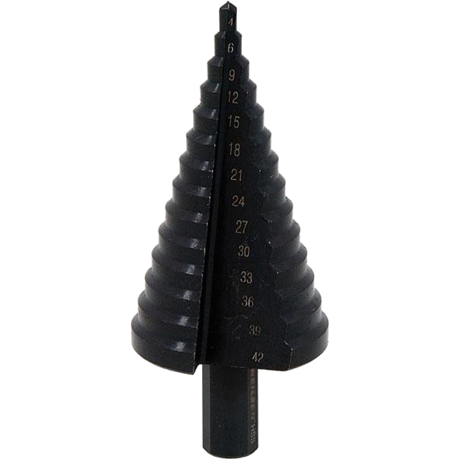 Neilsen Step Drill HSS Steel Titanium Cone Bit Hole Metal Cutter Tool 4 ? 42mm Steps: 4mm, 6mm, 9mm, 12mm, 15mm, 18mm, 21mm, 24mm, 27mm, 30mm, 33mm, 36mm, 39mm, 42mm Ideal for cutting precision holes in metal and other materials