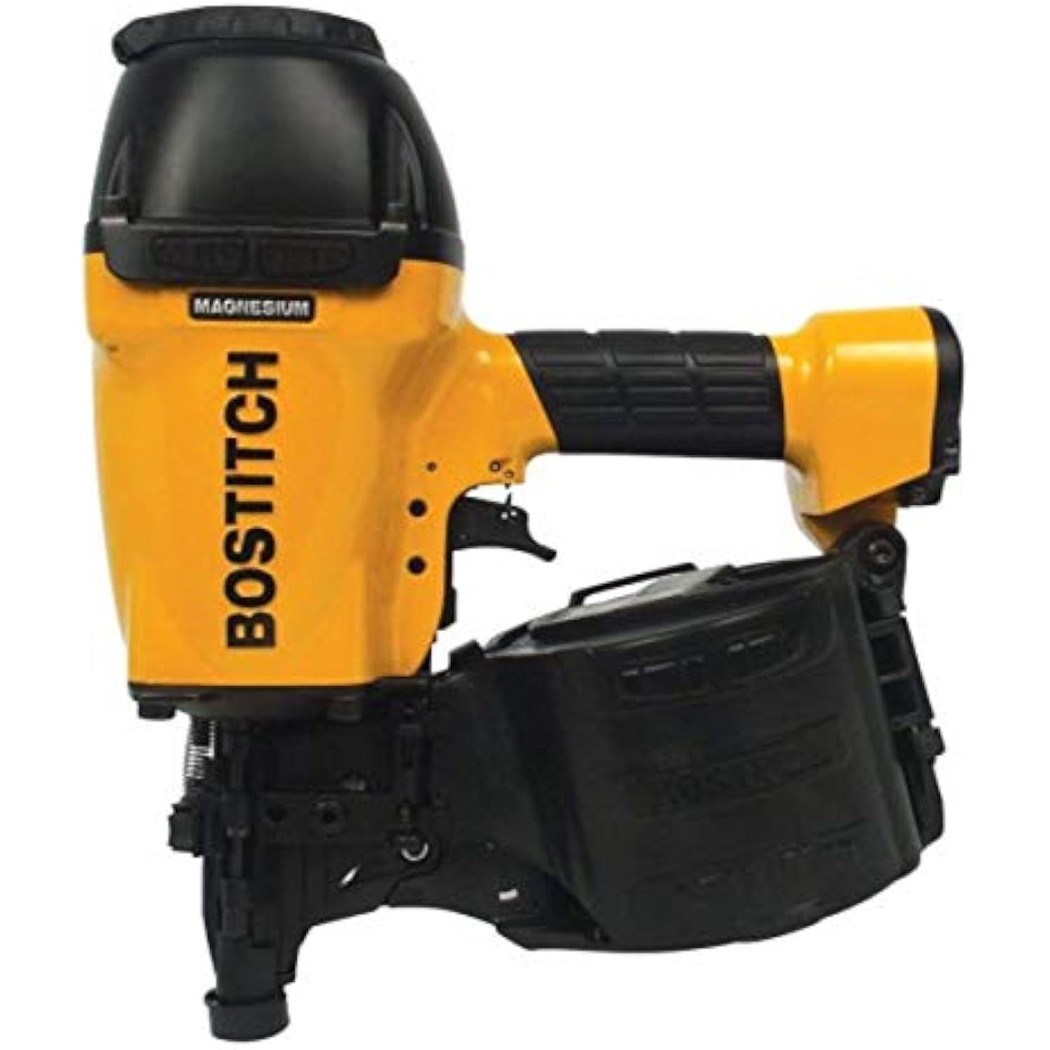 Product Description This 15-degree Coil Framing Nailer is lightweight and easy to manage. Adjust nails to your desired depth with the push of a button. Direct exhaust away from your face for convenience. Depend on this 15-degree BOSTITCH framing nailer for high production. -- The Bostitch pneumatic coil framing nailer is designed to be impressively rugged and powerful. Its sturdy nature is disguised by a lightweight magnesium housing that's easy to hold and capable of surviving some serious abuse on the job site. This hardy model even has aggressive wear guards that help protect it from damage when you use it on abrasive surfaces. The N89C-1 has a patented push-button adjustable depth guide to set nails at precisely the desired depths, quickly and conveniently, with minimal downtime between jobs. It also features an adjustable exhaust to direct cast-off air away from your face and your workpiece, for a clearer view of your project. This model has a driving power of 1,050 in./lbs., and it accepts 15-degree coil framing fasteners from 2 inches to 3-1/2 inches (.099 - .148-inch shank). It operates at 70-120 psi, with a 1/4-inch NPT thread fitting. The N89C-1 has a magazine that holds up to 300 nails. -- Cherie Priest Applications Use the N89C-1 for almost any fastening application on the job site or home improvement project. It's perfect for framing, sheathing, siding, fencing, trusses, decks, bridging, pallets and crating, wood, or masonry. What's in the box Stanley Bostitch pneumatic coil framing nailer. Choosing a Pneumatic Nailer For small household jobs, an old-fashioned hammer is the perfect stand-by. But if you've got a bigger project on your to-do list, then a pneumatic power nailer could be your new best friend. Pneumatic nailers are a great alternative to traditionally powered nailers, because they're capable of providing more power -- and they operate with fewer moving parts, so a pneumatic nailer can take more abuse than its corded or battery-run cousins. A Word on Air Compressors All pneumatic tools require a steady supply of controlled, compressed air in order to work properly, and nailers are no exception. Bigger compressors with hardy motors and large tanks generate higher PSI levels and maintain them longer, so you'll probably want a piston-type, two-stage compressor to power your nailer. Smaller or single-stage models are fine for little projects, but if you need a pneumatic nailer, the odds are good that you're looking for some intense PSI and CFM ratings. Sometimes, a pneumatic nailer will come with its own compressor -- or it can be purchased as part of an air tool set. How Pneumatic Nailers Work Pneumatic nailers use compressed air power to cock and release the hammer. In order to fire a fastener, a valve opens to let air fill a cylinder -- which has a piston that's driven down hard and fast. This forces the nail out of the gun and into your workpiece. Then the piston recoils, and another nail is loaded. Important Points to Consider Check manufacturer's guidelines to find out what pressure (PSI) and volume (CFM) of air will give your pneumatic nailer the best results. Also, keep in mind that any restrictions on the air hose will diminish the tool's performance. Hoses that are very long, contain too much moisture, or are incorrectly sized will reduce air flow. This can prematurely wear out your tool and cause it to perform poorly. General Features Most models will feature a rubber nosepiece to prevent scuffing and marring of your workpieces, plus an exhaust system (rear or adjustable) to keep sawdust and debris out of your face and away from your project. Pneumatic nailers usually have an adjustable depth of drive, and depending on the model, they can accommodate nails up to 2-1/2 inches long, in a variety of different gauge sizes. With a powerful enough compressor behind them, they can shoot thousands of nails a day.