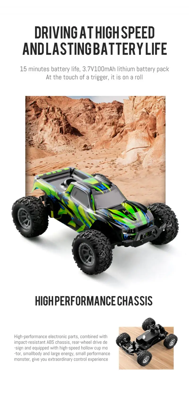 【Premium-quality Material】The car body is made of selected ABS ra1w materials and equipped with PVC high-toughness shell which is shockproof, anti-falling and can be handled with peace of mind, which helps the car keep stable and balance when passing through complex roads. Combined with impact-resistant ABS chassis, rear-wheel drive design and equipped with a high-speed hollow cup motor, gives you extraordinary control experience.