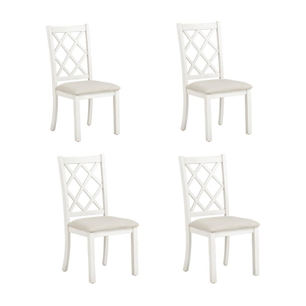 Solid Wood Frame // Rubberwood Legs// Splayed Feet// Anti-slip Pad // Upholstered Seat // Rubberwood Legs // Cross Design Back // Set of 4