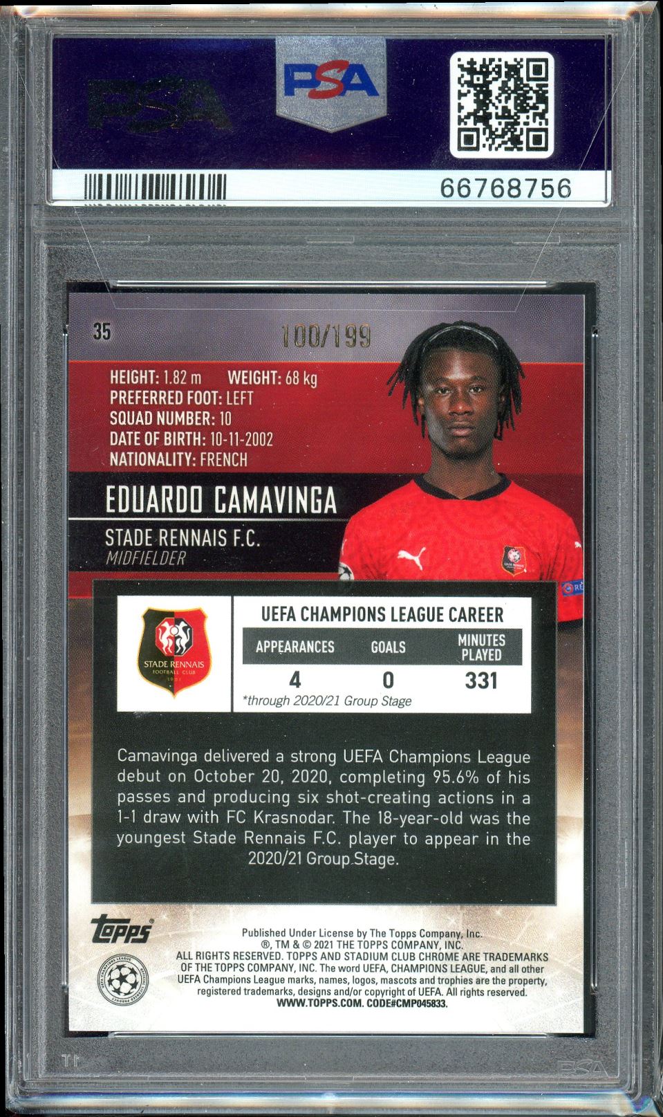 2020 Topps Stadium Club Chrome UEFA Aqua 100/199 35 Eduardo Camavinga