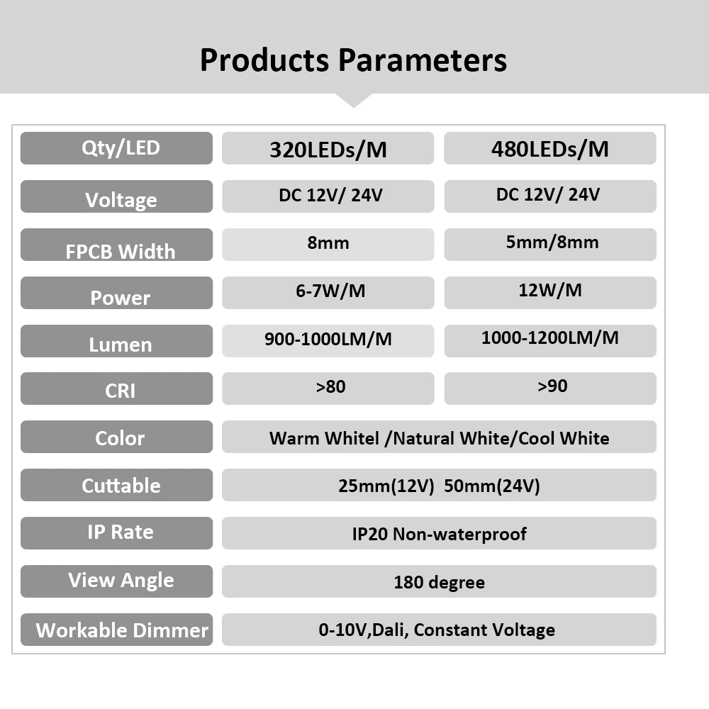 LED quantity: 320LEDs/M or 480 LEDs/M