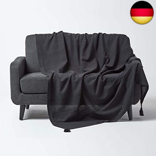 Homescapes Tagesdecke Rajput, schwarz, Wohndecke aus 100% Baumwolle, 150 x 200 cm, Sofaüberwurf/Couchüberwurf in RIPP-Optik