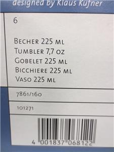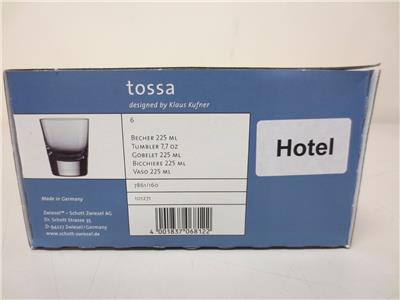 - 6 Each Tossa collection barware; for use as whiskey or juice glass; 7-3/5-ounce capacity; 3-4/5-inch tall, 3-2/7-inch wide