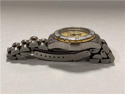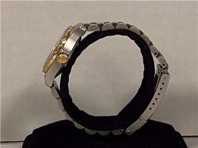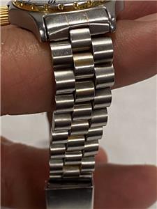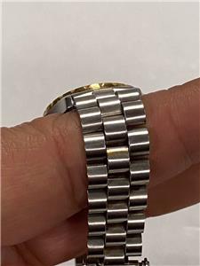 -BAND SIZE FITS A SIZE 5-3/4" WRIST AND CONDITION ON BAND HAS COSMETIC SCUFFS AND SCRATCHES AND ALSO BAND WAS A 2 TONE BUT WAS BUFFED OUT, AS SEEN IN PHOTO #7-#10.