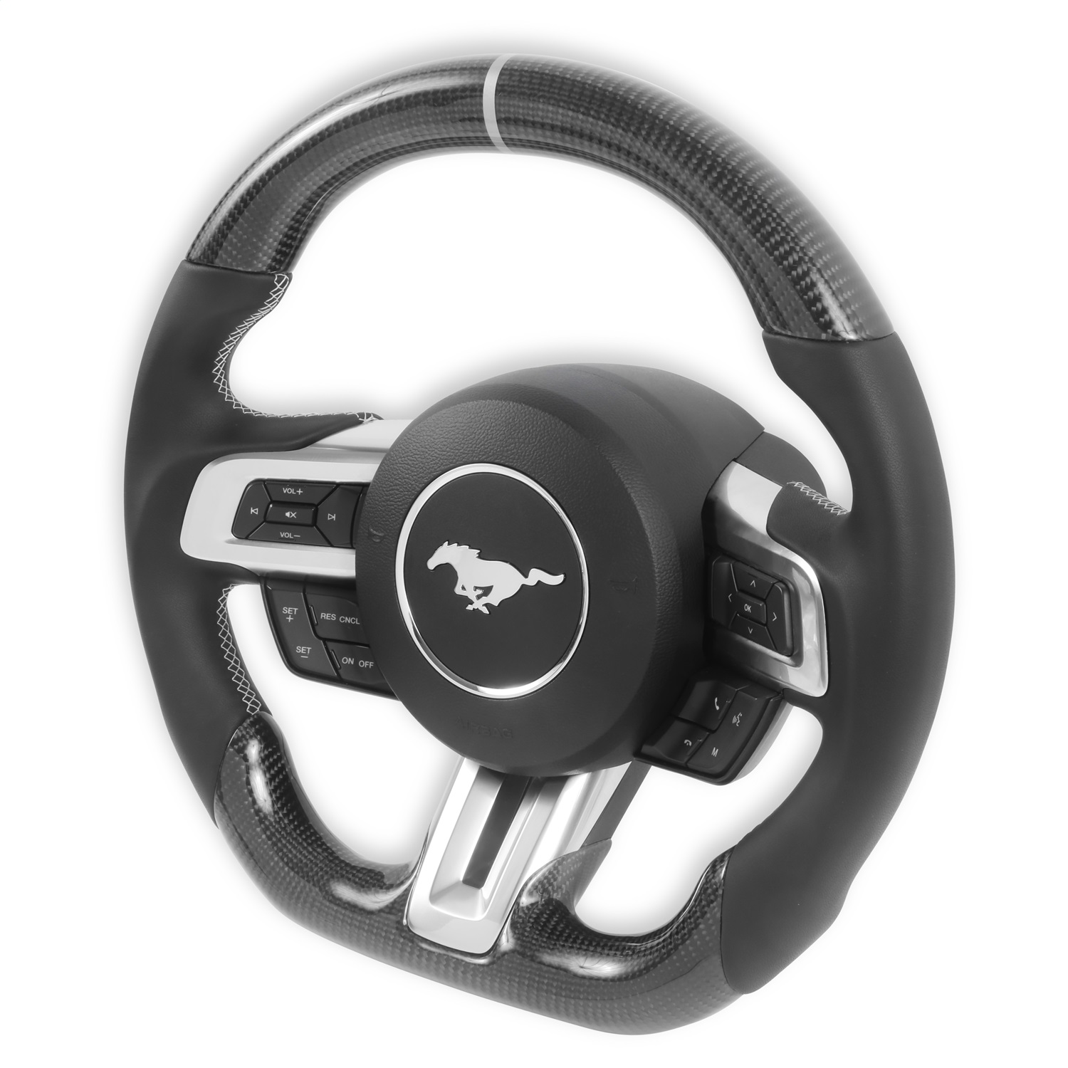 The motorsport inspired design features deep-pocketed palm and thumb grooves on the sides to give you a confidence-inspiring and comfortable grip for your hands. The cross-stitched silver threading gives the Carbon Fiber or Alcantara section an extra elegant touch that is only found on high-end performance steering wheels. The flat bottom gives you extra room for your legs and the centerline stripe (carbon only) makes it easy to find center in both street and performance driving applications. Simply put, we've made personalizing your steering wheel easy. This is our own design. We don't modify or wrap your existing wheel. We ship you a new wheel and you swap over your factory controls and airbag. There's no downtime without your car while you wait to ship out and modify your existing wheel, and there are no core fees. Simply swap and enjoy!