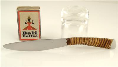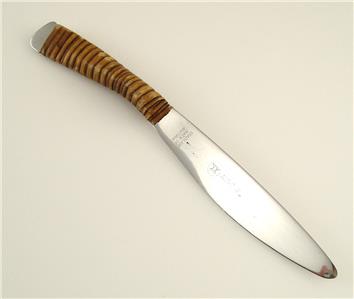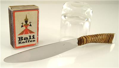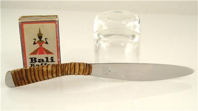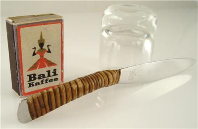 This offer is for an original Auböck fruit knife. Rare design version! There are fruit knives, but usually they are in a different version. The design dates back to the 1950s. The knife is branded with "Auböck", "Stainless Made in Austria" and the Amboss logo. The material is steel and natural bamboo. The steel part has been excecuted for Auböck by the company "Amboss". The fork measures 170mm in length (about 6.7 inches). One inch is 25.4mm.