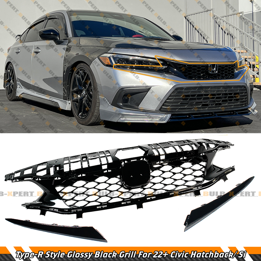 TYPE-R FL5 STYLE GLOSS BLACK FRONT GRILL FOR 2022-24 HONDA CIVIC SI & HATCHBACK