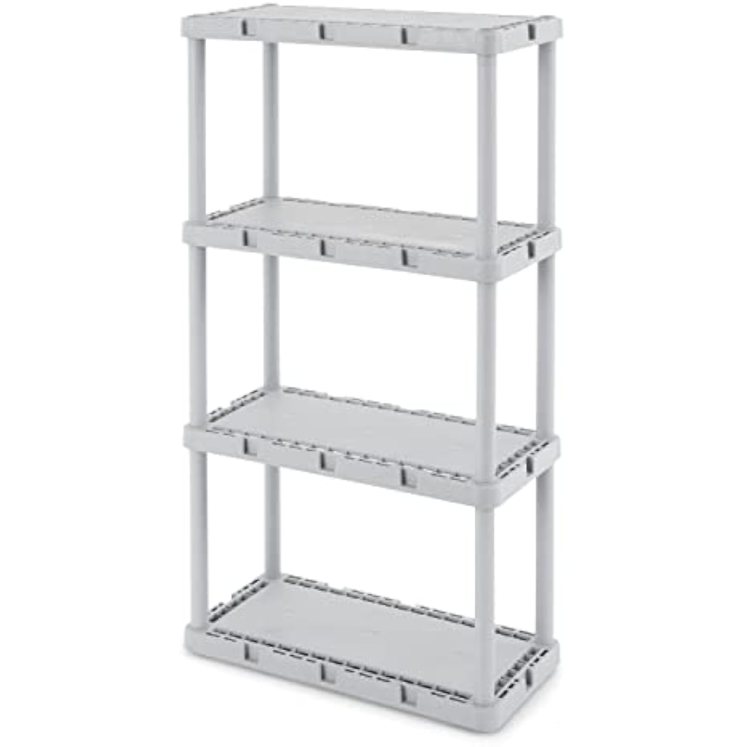 Need an efficient organizer for the overwhelming clutter of cleaning supplies, tools, gardening equipment, and more? Conveniently store with this instant shelving all in one place with the Gracious Living Knect-A-Shelf Fixed Height 4 Shelf System. This light-duty eco-friendly 4-shelf shelving unit holds up to 220 pounds. There is plenty of space to store items with each shelf holding up to 55 pounds. This shelving unit is quick and easy to set up with no tools required. The durable resin construction won't rust, chip, or peel, and the unique Knect-A-Shelf interconnecting system allows you to connect multiple units together for added storage space. This unit is ideal for the garage, basement, utility room, laundry room, or anywhere else where additional storage is required. No tools, no problem, as this cabinet does not require any tools for assembly. For whatever your organizational needs, the Gracious Living Knect-A-Shelf Fixed Height 4 Shelf Storage System will help you clean up the clutter.