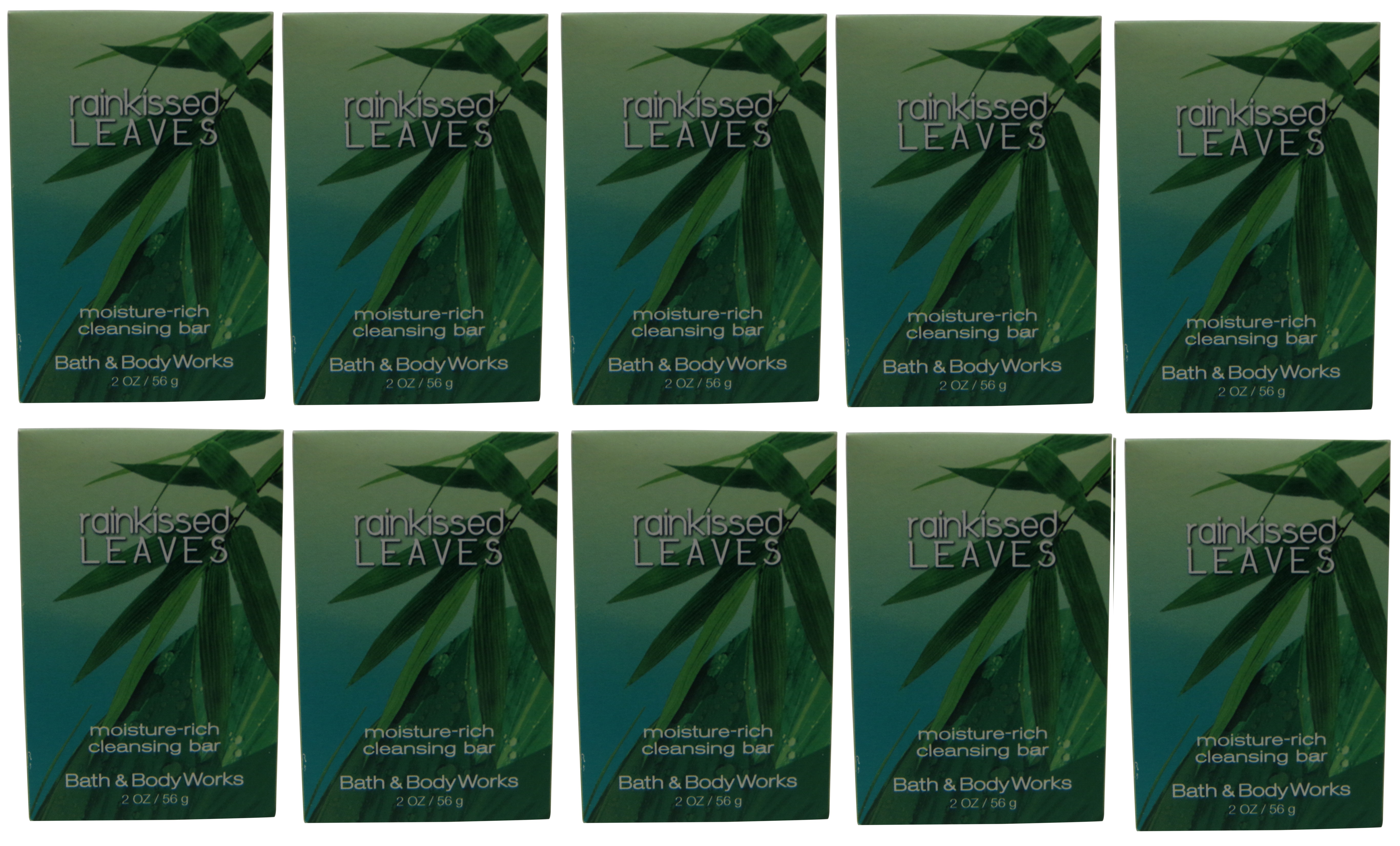 - Bath & Body Works Rainkissed Leaves Soap lot of 10 each 2oz bars. Total of 20oz