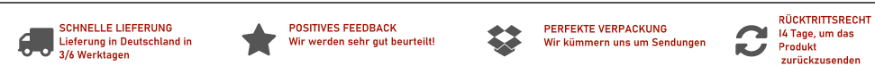 Wir haften nicht für Verluste oder Schäden an Artikeln nach Lieferung der Ware. Im Falle eines stark beschädigten Pakets, SAMMELN SIE ES NICHT und senden Sie es an den Absender zurück, wir senden Ihnen ein neues Paket.