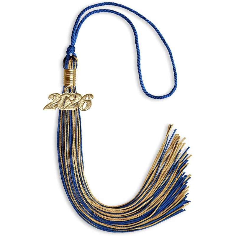 Mixed Double Color Tassel with Gold Date Drop (Royal Blue/Antique Gold)