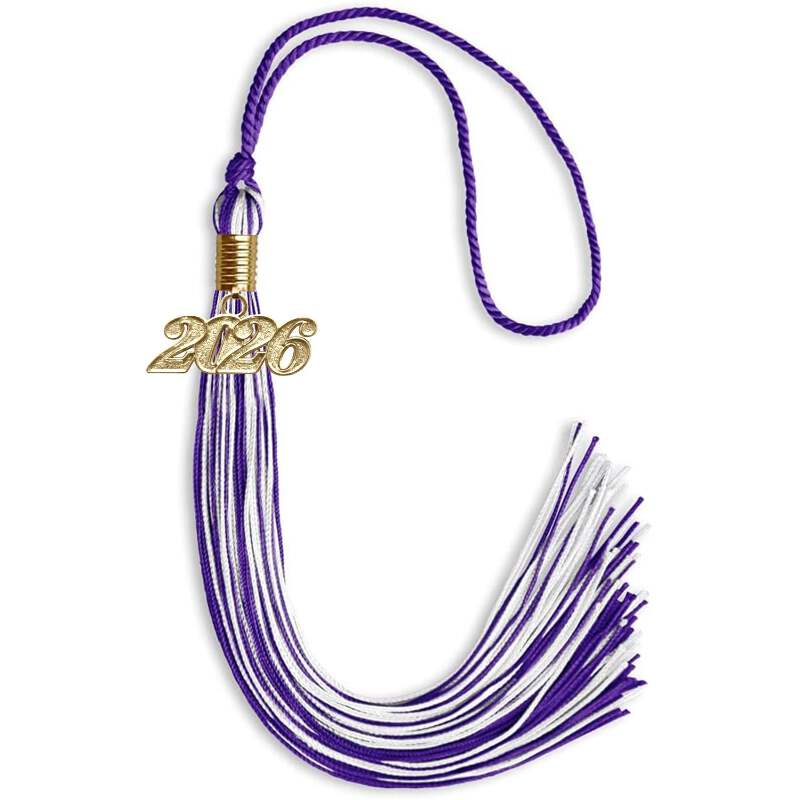 Mixed Double Color Tassel with Gold Date Drop (Purple/White)