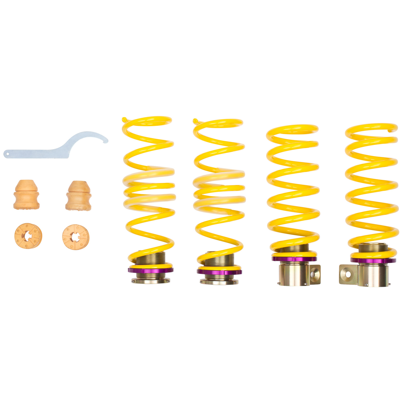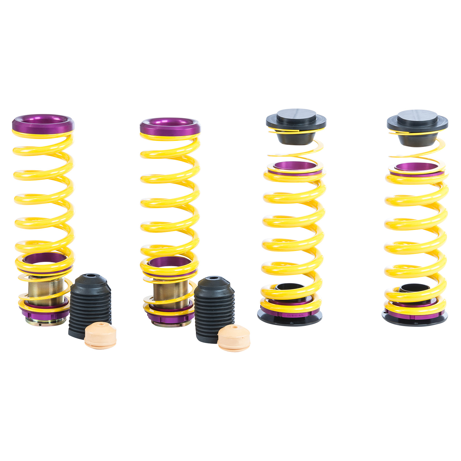 Die von KW genutzten hochwertigen Federn aus Chrom-Siliziumstahl sind bei den KW Gewindefedernsätze in ihrer Federrate fahrzeugspezifisch auf die jeweiligen Serienfahrwerkdämpfer und Radlasten abgestimmt. Dabei berücksichtigen wir bei der Entwicklung der jeweiligen Federnsätze, dass die Federraten auch mit den verschiedenen Dämpferkennlinien Ihres adaptiven Serienfahrwerks perfekt harmonieren. Durch ihre hochwertige Vergütung überzeugen sie genauso wie die KW Höhenverstellung mit einer langen Lebensdauer. Zusätzlich beinhaltet unser Lieferumfang bei den KW Gewindefedersätzen auch immer die fahrzeugspezifischen Elastomeraufnahmen und ein Staubschutzsystem, um Ihr Serienfahrwerk vor Verschleiß durch Spritzwasser und Salz zu schützen.