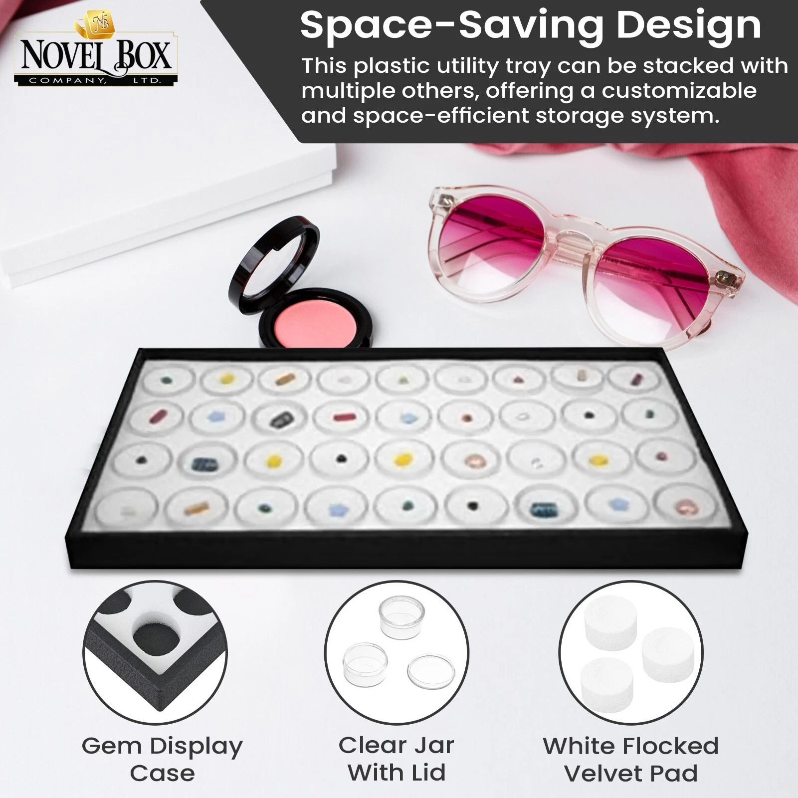 - Set Includes: This set includes a stackable Plastic utility black tray with 50, 36, and 24 gem jars inserts. It is designed to organize and display jewelry, gemstones, or small collectibles securely, offering an ideal solution for storage