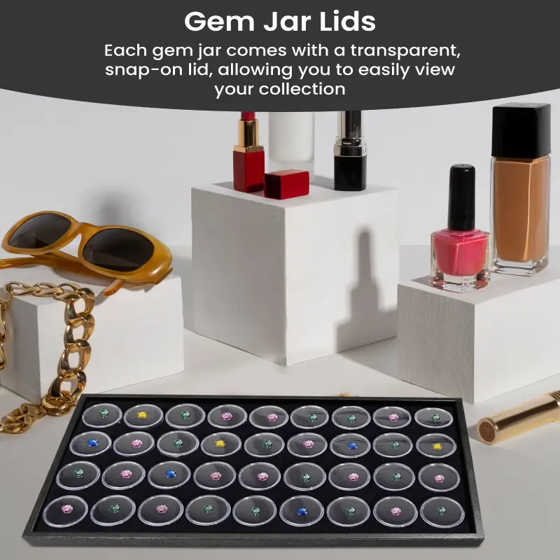 - Gem Jar Lids: Each gem jar comes with a transparent, snap-on lid, allowing you to easily view your collection while protecting the jewelry or gems from dust, moisture, and scratches during storage or transportation.
