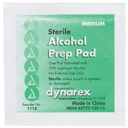 - Sterile alcohol prep pads saturated with 70% isopropyl alcohol.