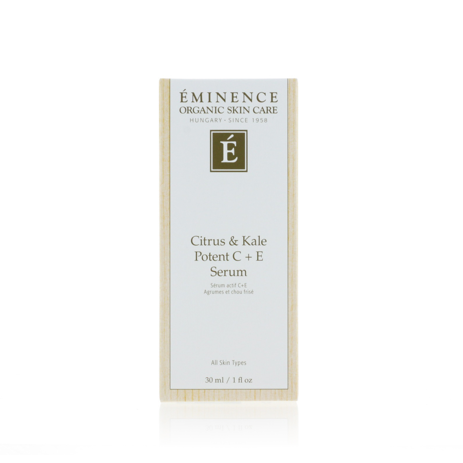 Eminence Citrus & Kale Potent C+E Serum delivers a nourishing cocktail of vitamins and antioxidants to correct discoloration, provide powerful protection, and reverse signs of aging. This collagen-boosting formula contains 16% vitamin C to combat oxidative stress while ferulic acid and leafy greens stabilize the vitamin C as well as provide additional antioxidant defense. With a non-greasy, lipid base, Eminence Citrus & Kale Potent C+E Serum absorbs quickly for a clear, radiant, and youthful complexion.