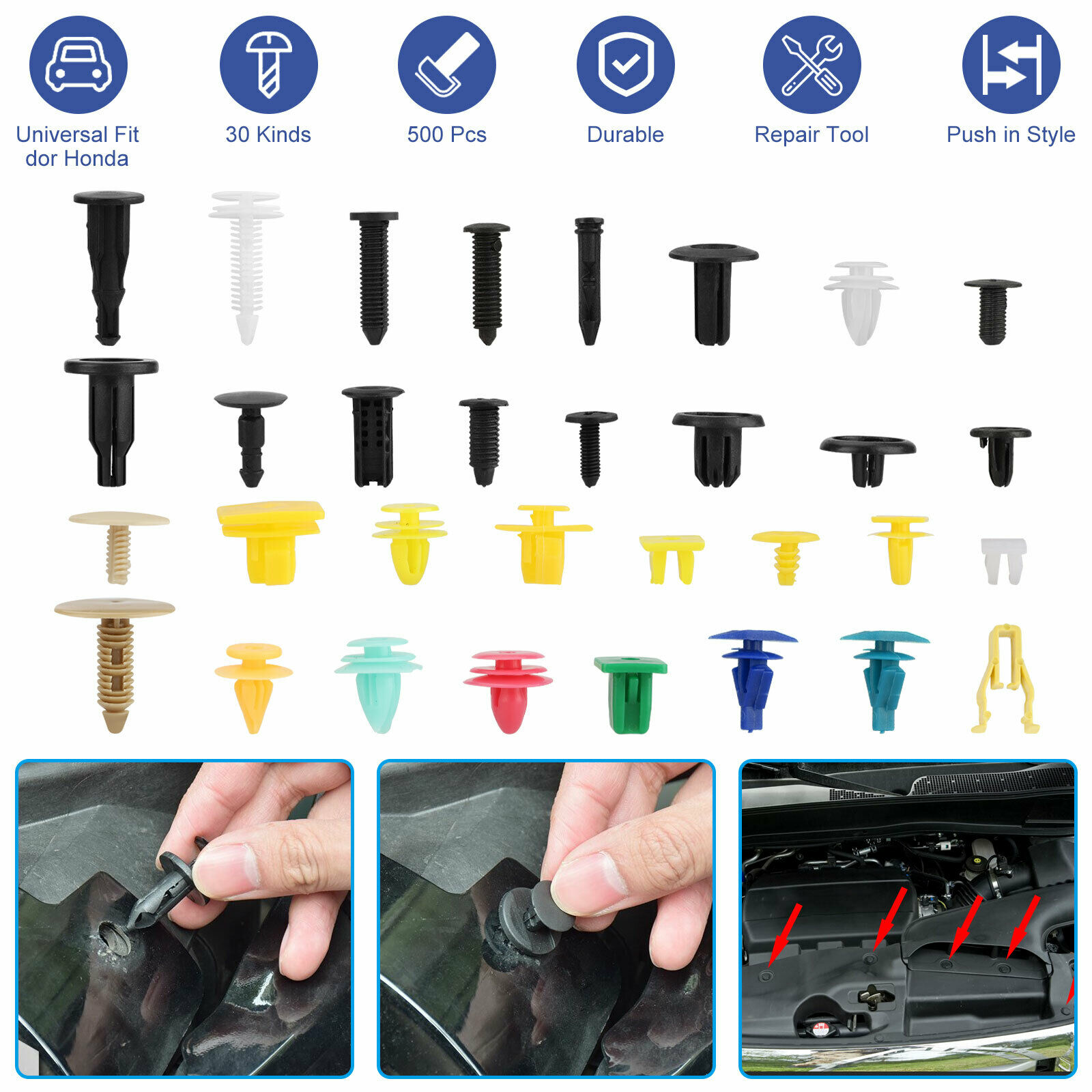 - 500pcs Mixed Push Pin Bumper Rivet Door Trim Panel Clip Fastener Retainer Assortment Kit