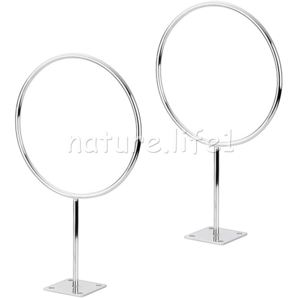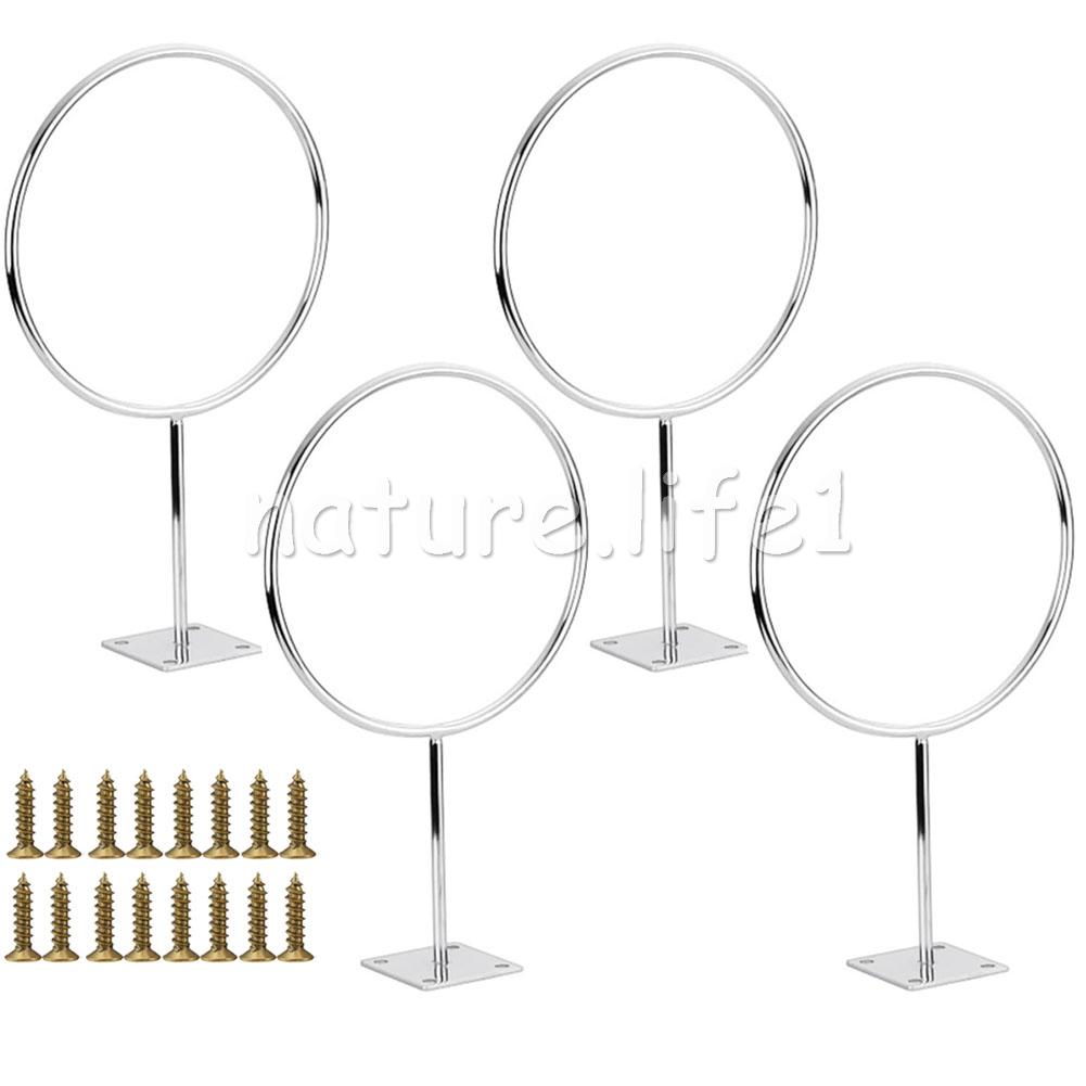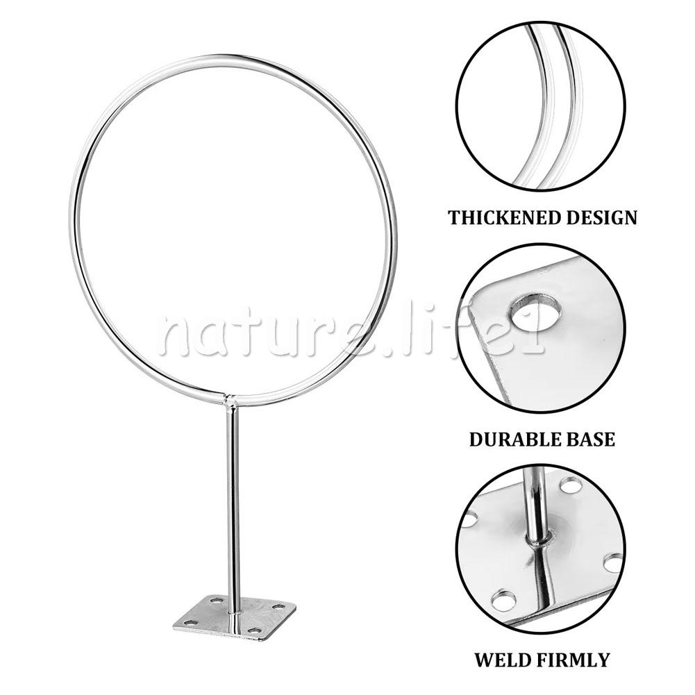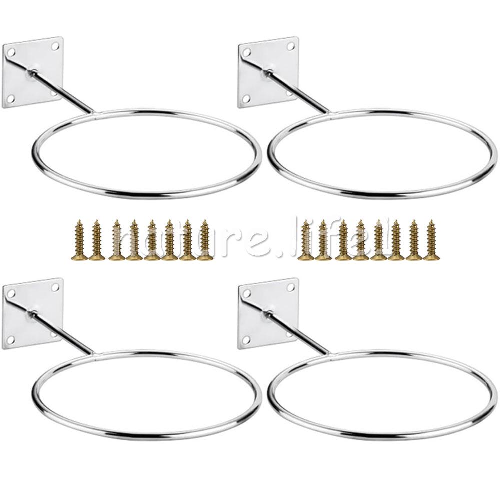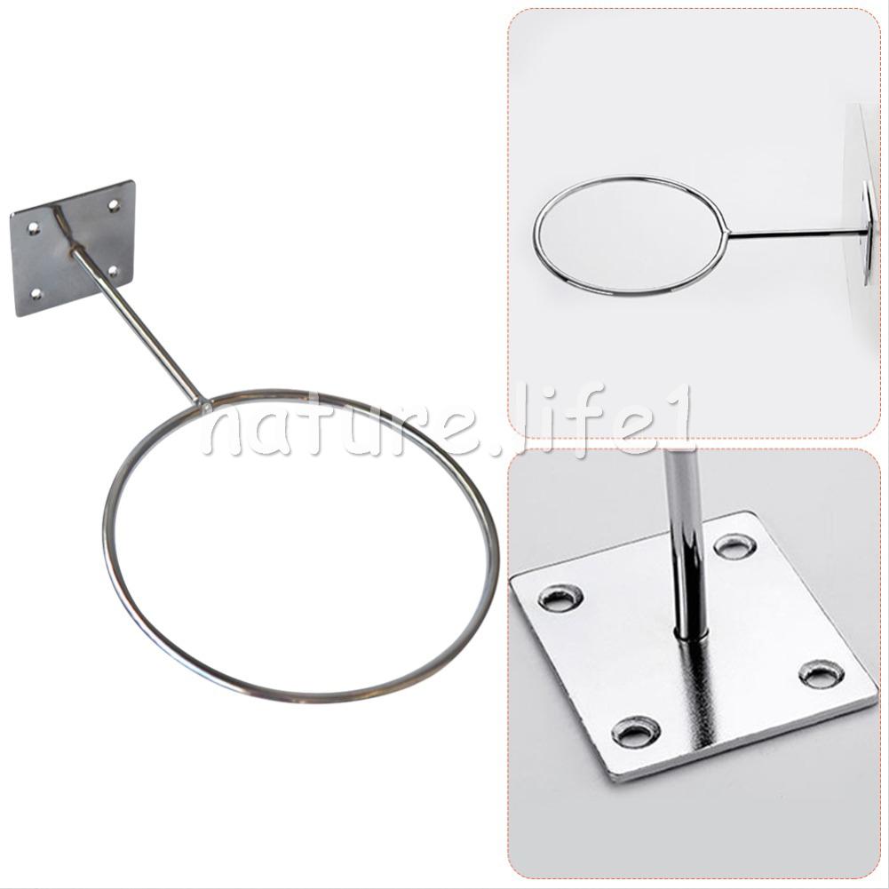 Feature: Color: Silver Material: Metal Quantity: 4 sets Dimensions: 25.5 x 14.5 x 4.5 cm Iron ring diameter: 14.5 cm Bottom length: 4.5 cm Iron ring thickness: 5.5mm This shelf can hold basketball. football. Volleyball and other balls do not appear crowded, saving space. Installation is very simple and quick with four pre-drilled screw holes. This rack can be installed in a home, office, garage, school or shop. The diameter of this rack is 14.5 cm, which can accommodate basketball, football, medicine balls, etc. Package Included: 4pcs basketball display stand (with 16 screws)