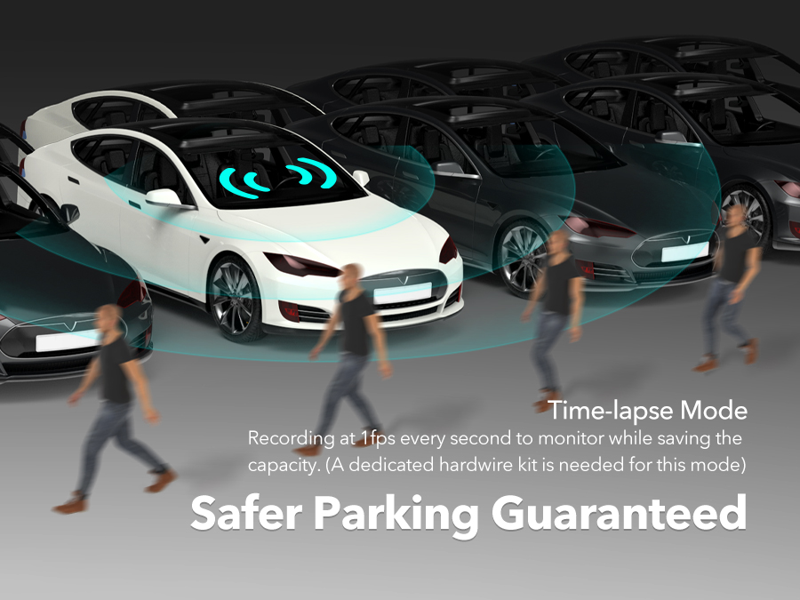 4. When using the parking monitoring function, please select the [time-lapse] recording mode. Otherwise, the driving recorder will quickly drain your car battery.