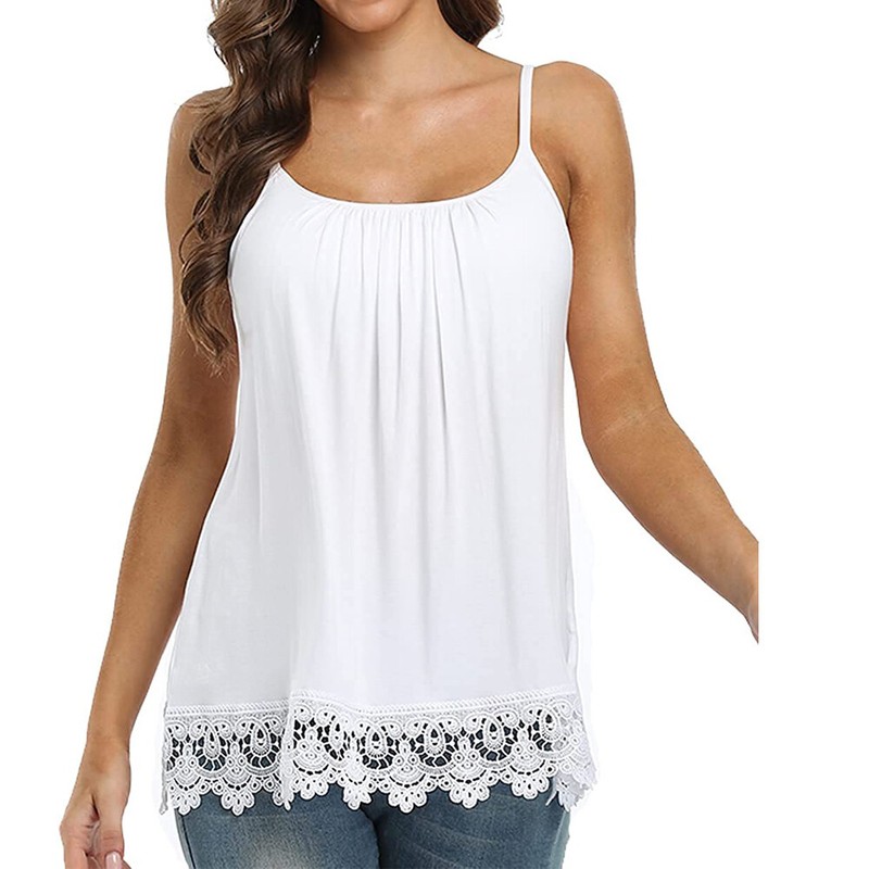 Features - Scoop neck ,sleeveless, adjustable strap and gorgeous lace hem, basic and classical tank with various colors.