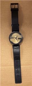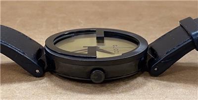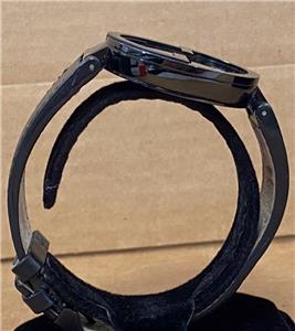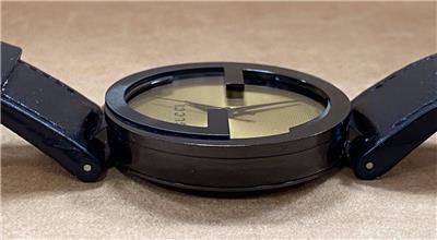 -BAND IS A BLACK GUCCI LEATHER BAND AND HAS COSMETIC WEAR, BAND FITS A SIZE 7-3/4" WRIST.